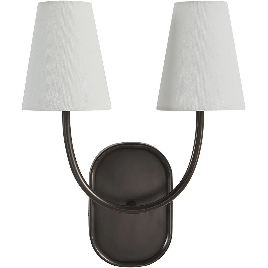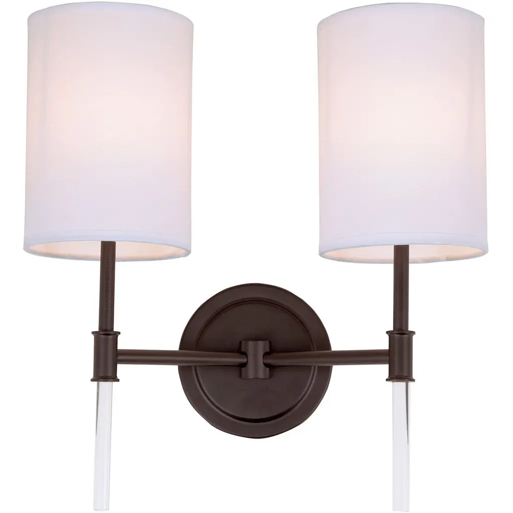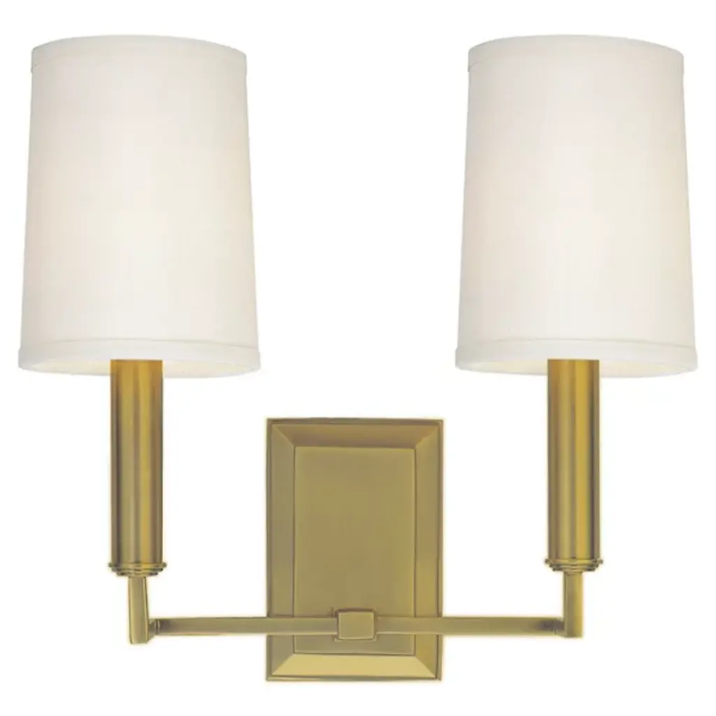 Rather than a traditional bobeche and candlestick motif, the Clinton 2-Light Wall Sconce by Hudson Valley Lighting features a series of stepped circular rings that transition from thin square arms to a single smooth columnar holder. Tapered barrel parchment shades complete the cleanly styled composition.