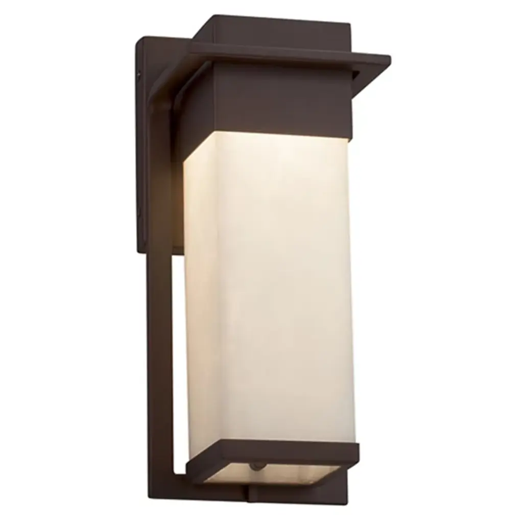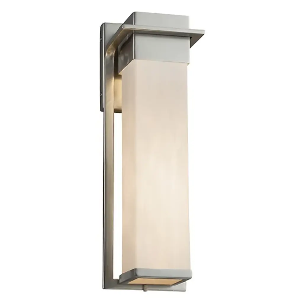 The Clouds Pacific Outdoor Wall Sconce from Justice Design Group has a modern rustic style that melds seamlessly with any existing exterior décor. The frame, available in a range of finishes, holds the rectangular shade in place. This sconce is offered in several sizes for the perfect fit with your exterior.