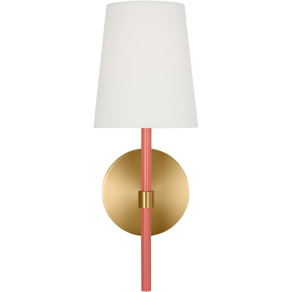 Exuding elegant simplicity, this sconce is beautifully crafted of brass in a soft brass finish with a linen shade. A versatile piece that will work exceptionally well in any space, this fixture is hardwired.