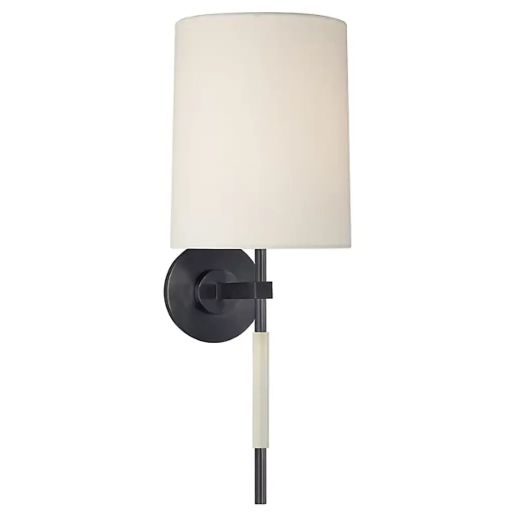 The Clout Tail Wall Sconce by Visual Comfort Signature, formerly known as Visual Comfort, showcases a subtle sense of refinement that will strengthen any décor scheme. The clean white linen shade diffuses light in a tranquil manner, while the circular wall plate and short vertical stand are available in a variety of stunning finishes. Whatever you choose, this sconce will breathe new life into your home’s interior.