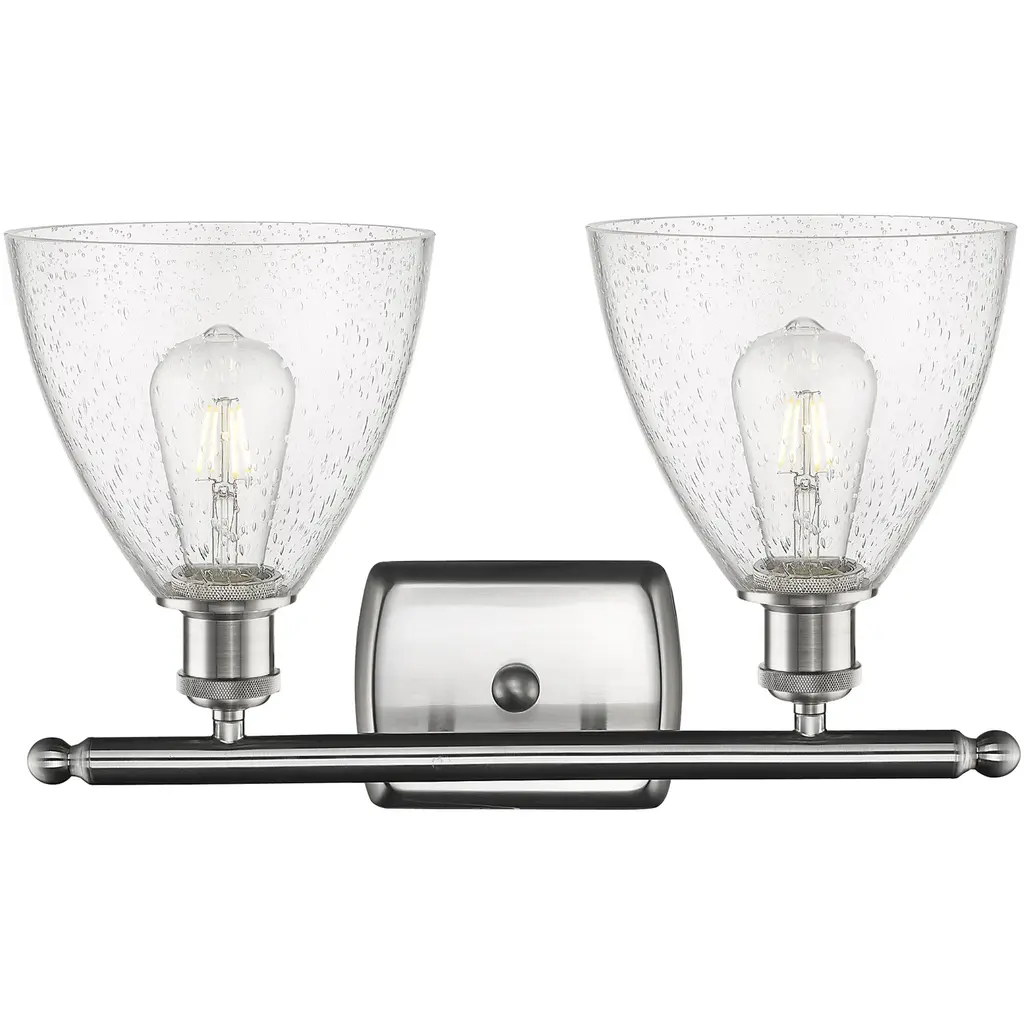 INNOVATIONS 516-2W-SN-G804 Clymer 2 16 inch Bath Vanity Light Brushed Satin Nickel. Style: Art Nouveau, Transitional, Modern . Collection Name: Ballston. Metal Finish(Body): Brushed Satin Nickel. Metal Finish(Canopy/Backplate): Brushed Satin Nickel. Material: Steel, Cast Brass, Glass. Dimension(in): 9.875(H) x 13.875(W) x 6.0625(Ext). Bulb: (2)60W Medium Base Incandescent(Not Included). Voltage: 120. Dimmable: Yes. Color Temperature (Kelvin): 2200. Color Rendering Index (CRI): 99.9. Lumens: 220. Life Expectancy (Hours): 2000. Glass Shade Description: Seedy Clymer. Glass Type: Transparent. Shade Shape: Cylinder. Glass or Metal Shade Color: Seedy. Shade Material: Glass. Shade Dimension(in): 3.875(W) x 5.875(H). Fitter Measurement (Glass Or Metal Shade Fitter Size): Neckless with a 1.625 inch opening. Backplate Dimension(in): 4.5(H) x 6(W) x 0.75(Depth). ADA Compliant: No. California Proposition 65 Warning Required: Yes. UL/ETL Certification Type: Damp Location.