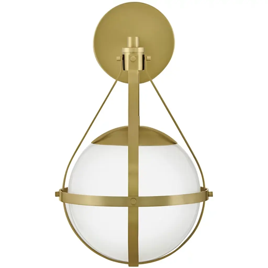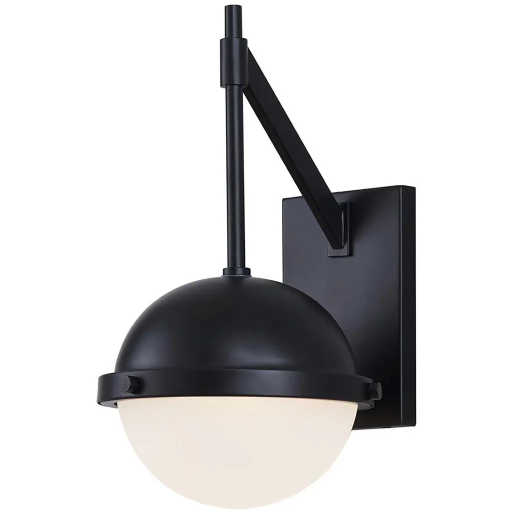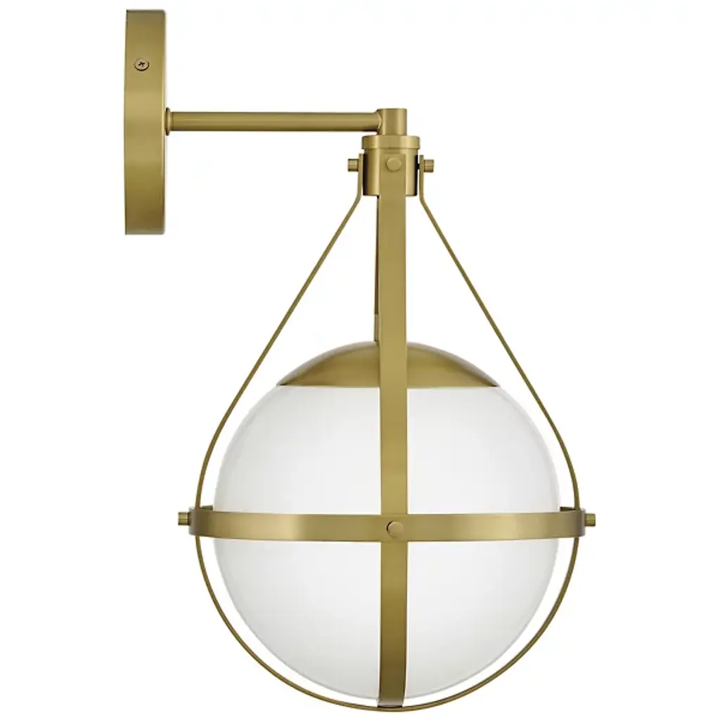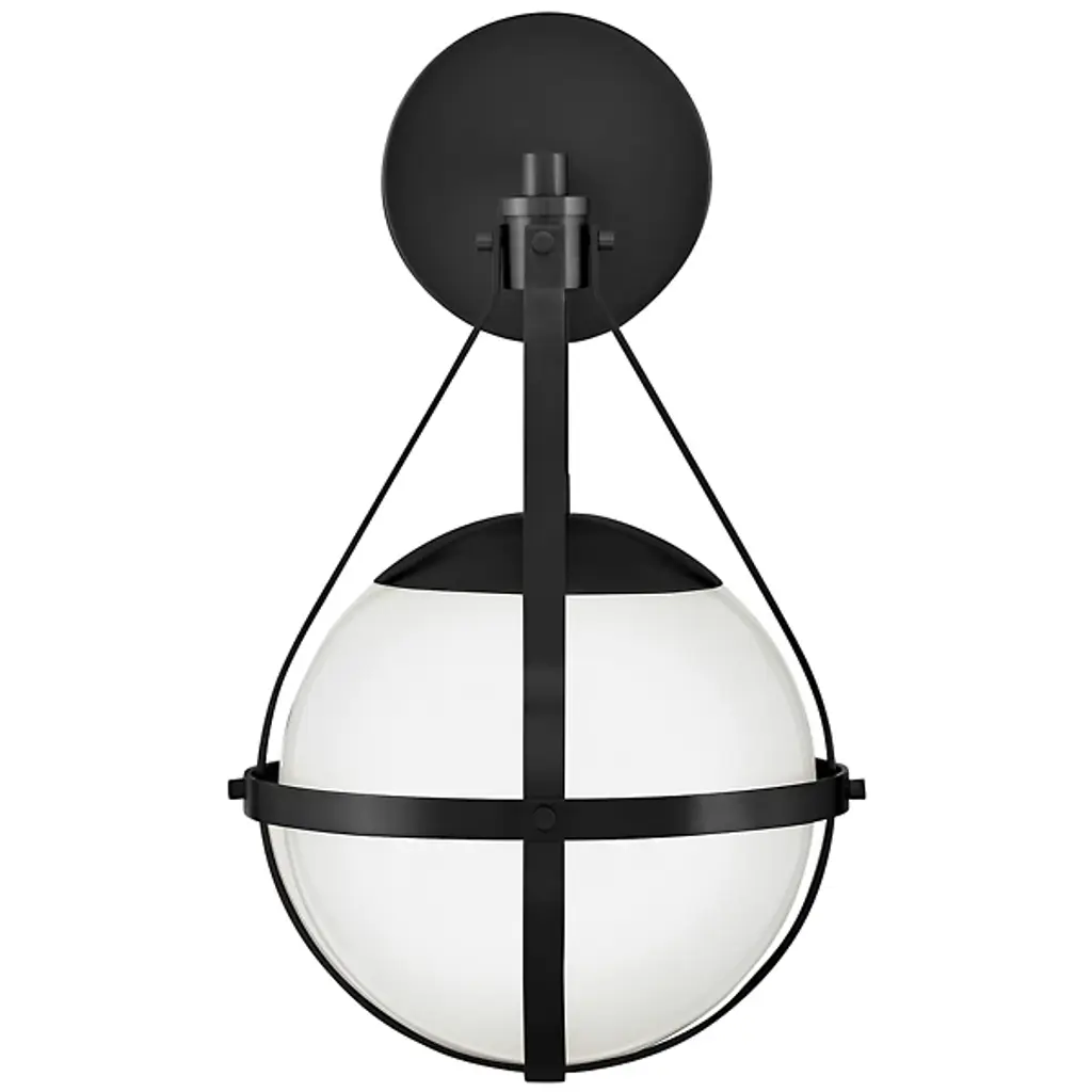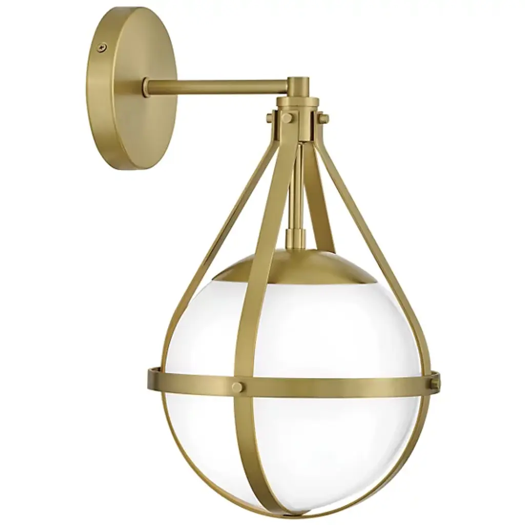 The Colby Wall Sconce from Lark is a retro-modern stunner that brings unexpected glamour to any space with its cased opal glass globe, beautifully accentuated by a cage-style frame. This striking combination adds a touch of elegance and sophistication to your décor, making it a perfect statement piece. Its unique design blends vintage charm with contemporary flair, enhancing the visual appeal of any room with its distinctive and stylish presence.