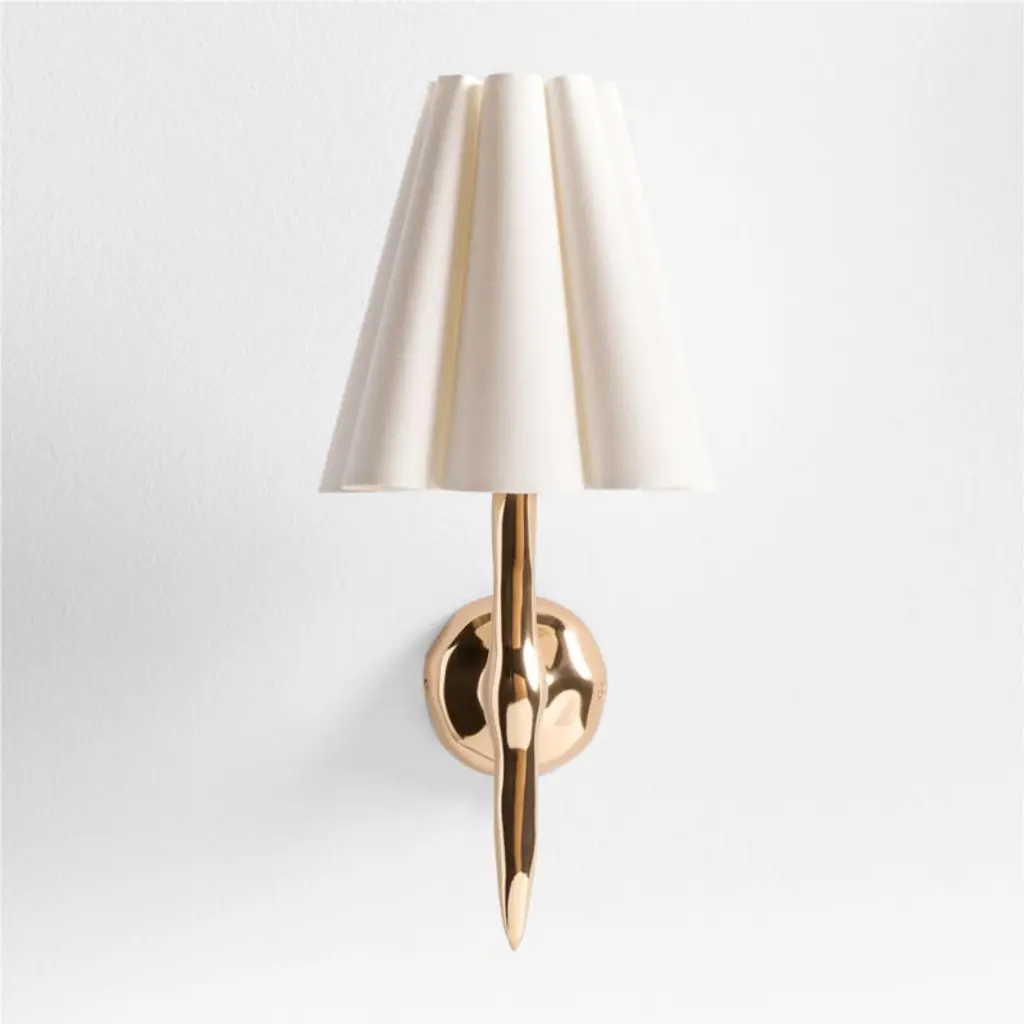 A captivating blend of artistry and function, our Colette sconce captivates with its nature-inspired forms and exquisite materials. The organic branching base highlights its hand-hammered texture with an ultra-polished brass finish. Balancing that striking sculptural design, the refined, softly scalloped linen shade gently diffuses light that reflects off the gleaming base to create a warm, inviting glow. Colette is a piece of jewelry for your wall, adding a touch of understated elegance wherever you place it.