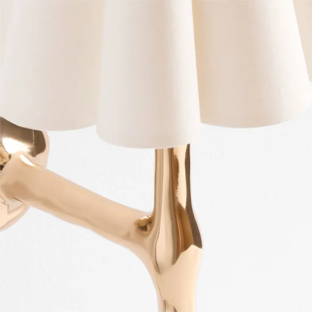 A captivating blend of artistry and function, our Colette sconce captivates with its nature-inspired forms and exquisite materials. The organic branching base highlights its hand-hammered texture with an ultra-polished brass finish. Balancing that striking sculptural design, the refined, softly scalloped linen shade gently diffuses light that reflects off the gleaming base to create a warm, inviting glow. Colette is a piece of jewelry for your wall, adding a touch of understated elegance wherever you place it.