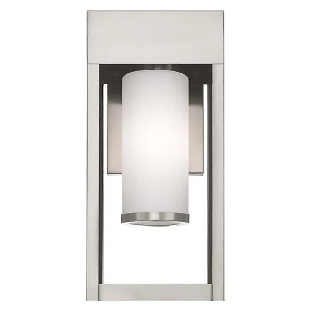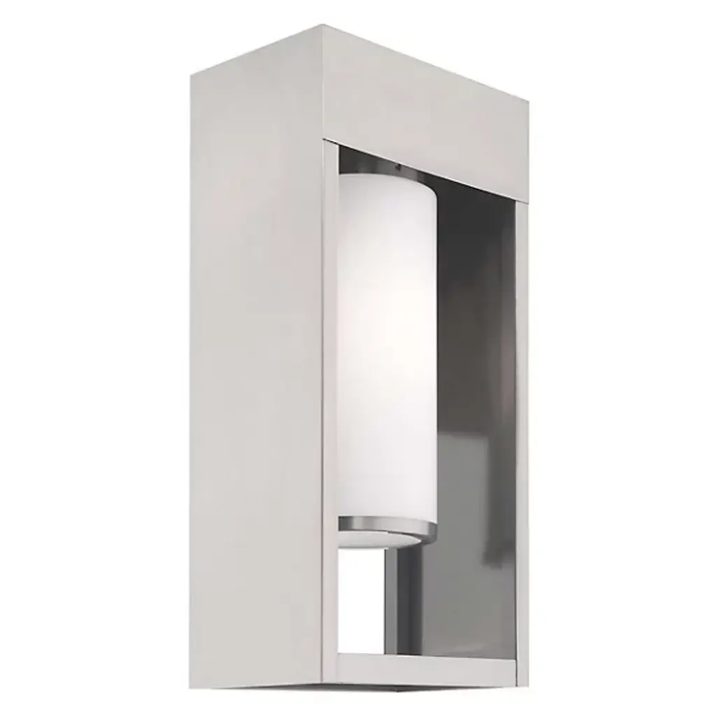 Understated yet unmissable. While complementing the sharp architectural lines of the home, the Collen Outdoor Wall Sconce from Alder & Ore treats exterior walls to a soft, intimate aura. It’s a contemporary piece marrying pure form with enduring materials. The sconce draws you in with depth like a shadowbox through its solid brass body. Framed by the sleek brass box, a blown glass cylinder creates contrast in its clean opal white finish. When turned on, warm light fills up the interior for an elegantly contained ambient glow.