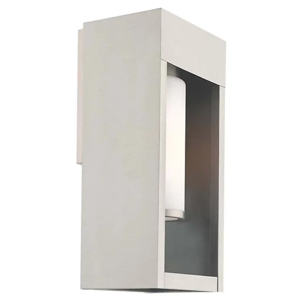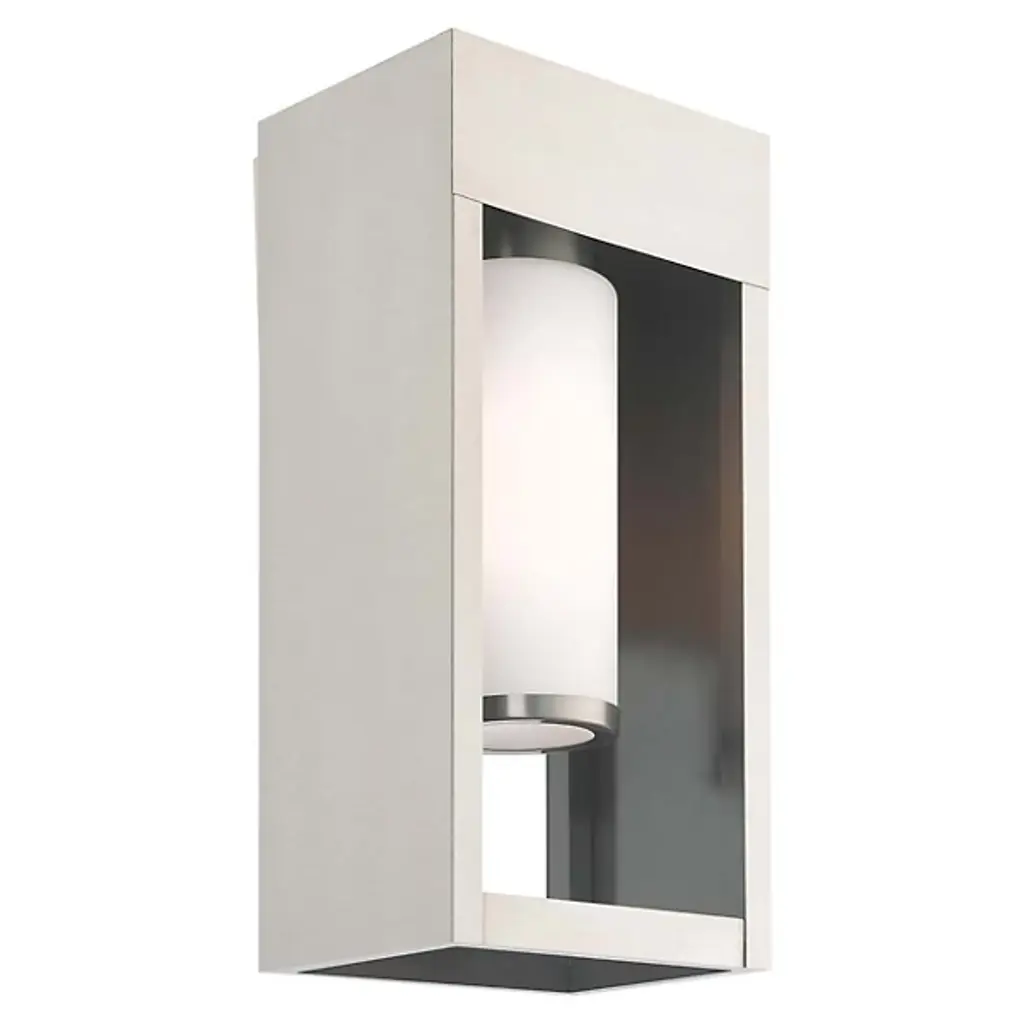 Understated yet unmissable. While complementing the sharp architectural lines of the home, the Collen Outdoor Wall Sconce from Alder & Ore treats exterior walls to a soft, intimate aura. It’s a contemporary piece marrying pure form with enduring materials. The sconce draws you in with depth like a shadowbox through its solid brass body. Framed by the sleek brass box, a blown glass cylinder creates contrast in its clean opal white finish. When turned on, warm light fills up the interior for an elegantly contained ambient glow.