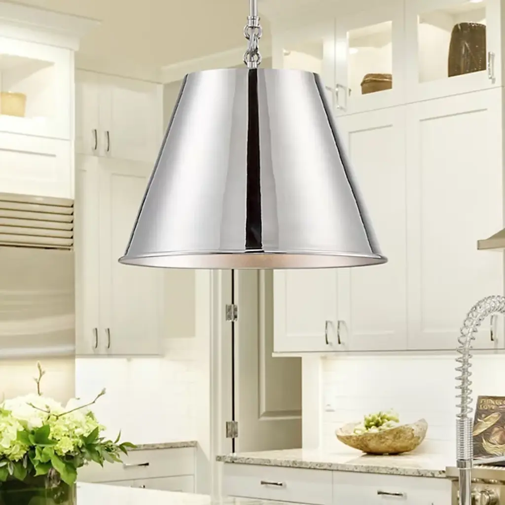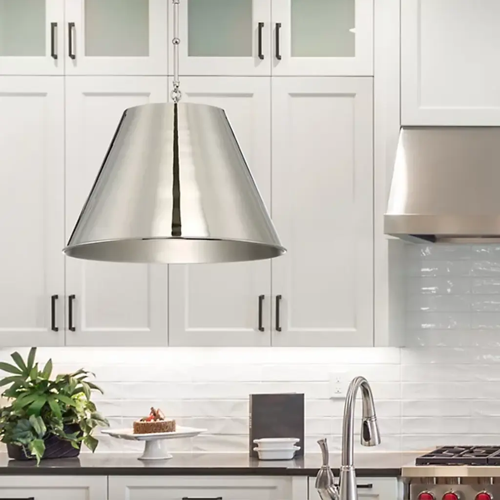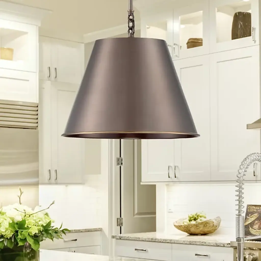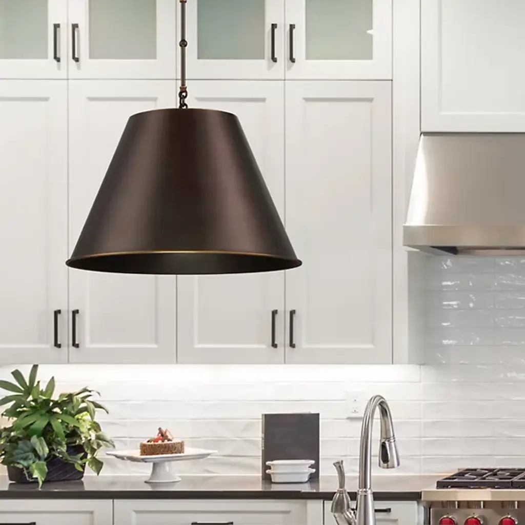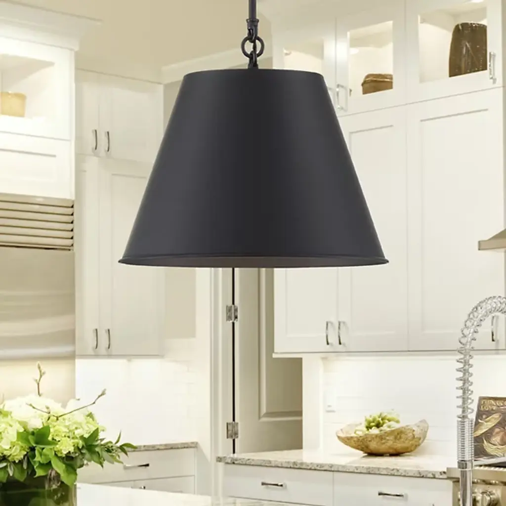 Minimalism meets detail. Featuring an elegant tapered shade with a subtly flared lip, the Alden Pendant by Savoy House offers up a touch of contrast in the form of ornamented suspension rods. This diverse pendant is opulent from the top down and straightforward from the bottom up, bringing versatile charm to décor stories from retro to modern and more.