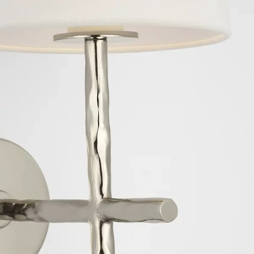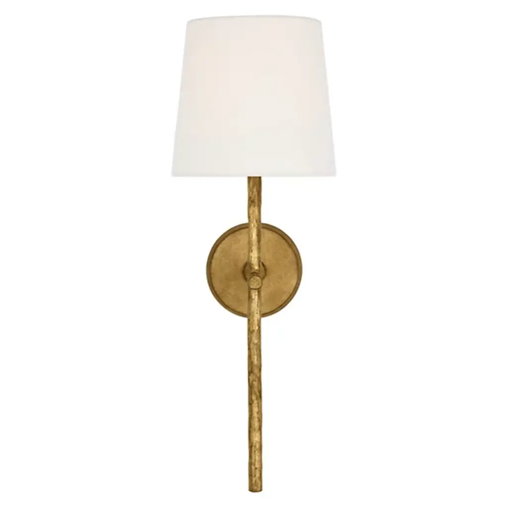 Add a rustic character to your interiors with the Collette Tail Wall Sconce from Visual Comfort Signature. Designed by Suzanne Kasler, this transitional piece features a beveled disc wall plate anchoring a vertical metal stem, artfully crafted with subtle imperfections for a charming, lived-in feel. Topped with a flared fabric shade, it casts a warm, inviting glow around a focused pool of downlight, blending classic design with a refined, artisanal character.