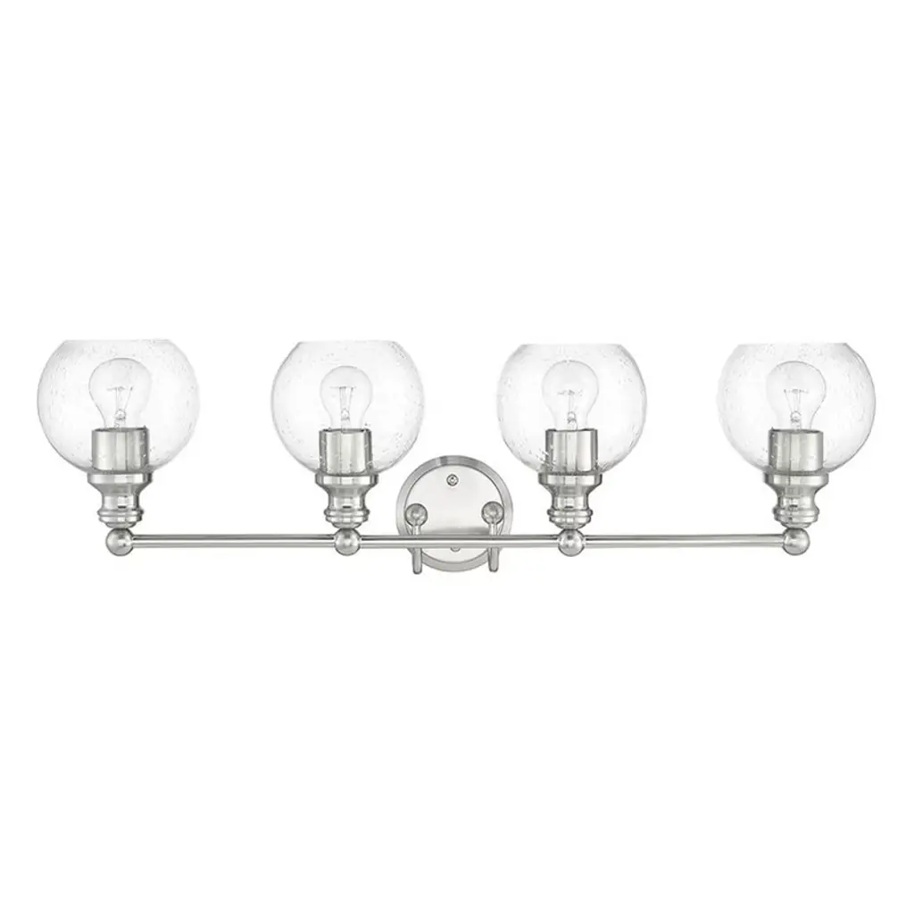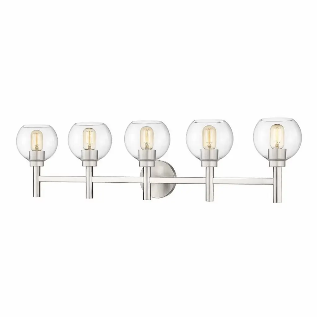 The Collier Collection of lights will be sure to have your guests admire your modern sense of style with the beautiful simplicity of its shape and form. The clean lines of the ball shaped shades create the juxtaposition of intricate simplicity, achieving a style that has both form and function. This wall lamp can be oriented facing up or down, but will always illuminate your room. Available in a brass, chrome, or black finish with either a clear or frosted ball glass shade, it is the perfect wall lamp to enhance your bathroom, foyer, or hallways, allowing you to always live a chic and fashionable lifestyle (light bulbs not included).