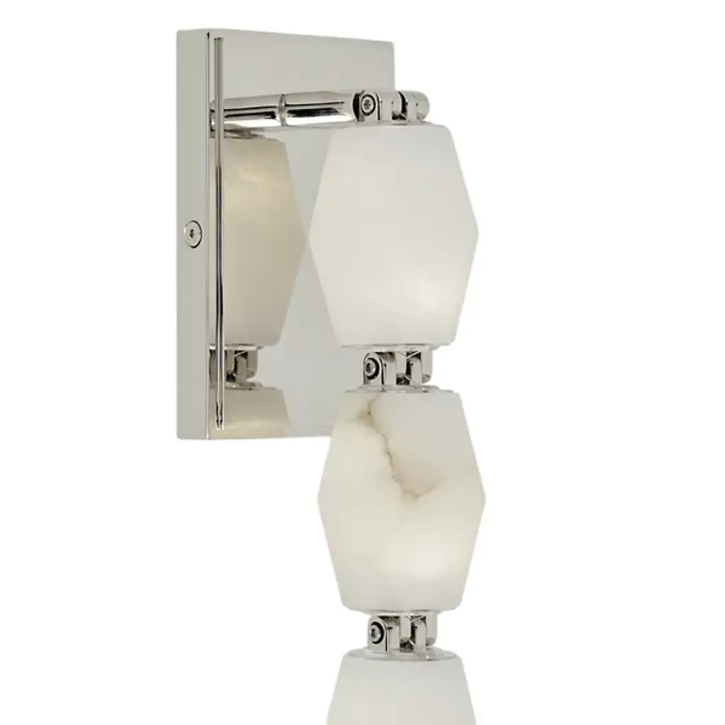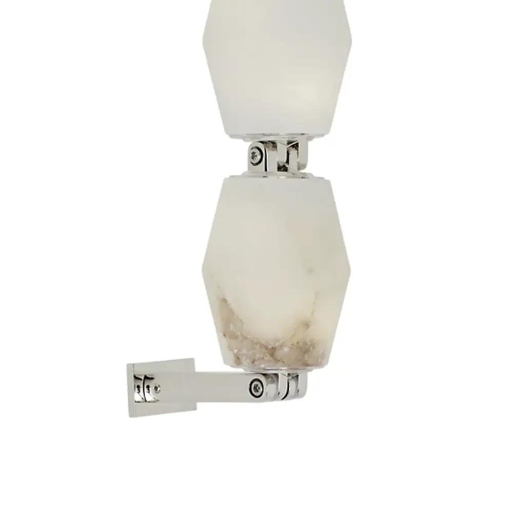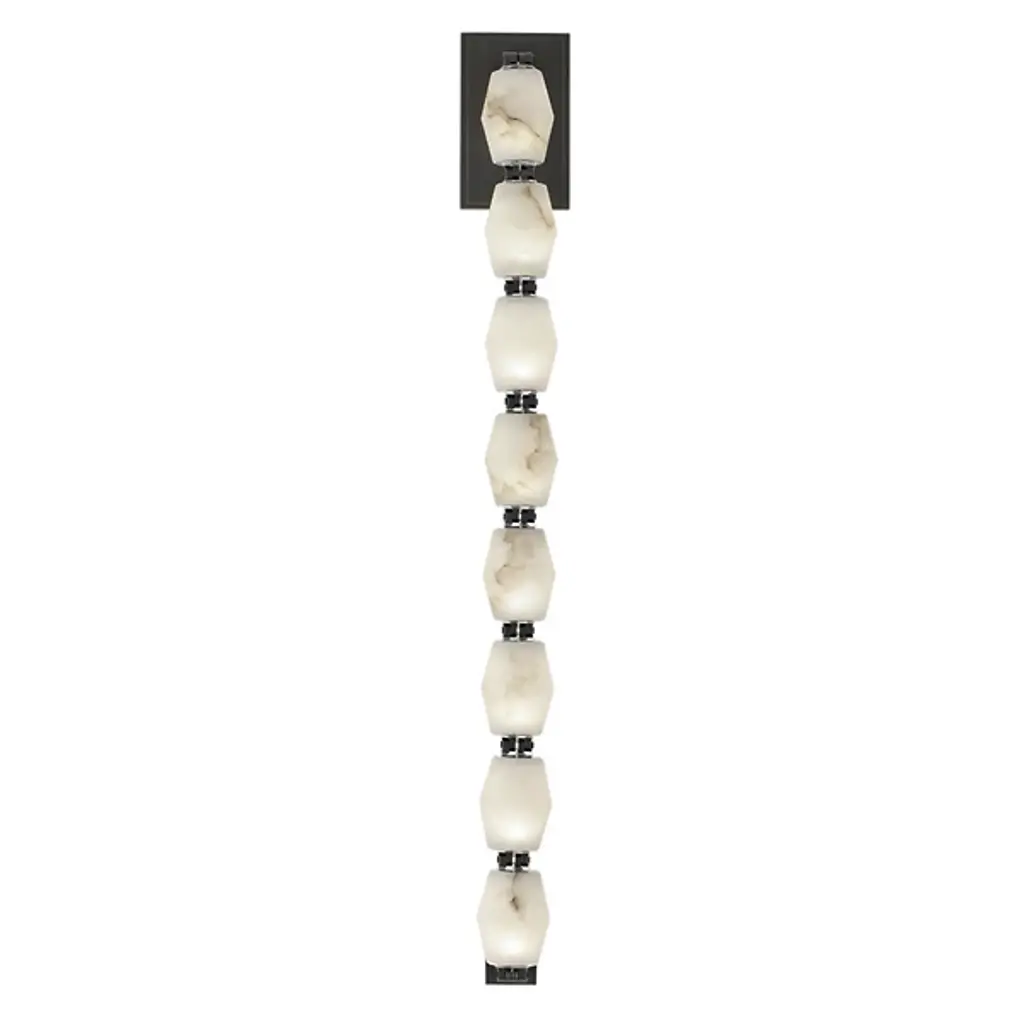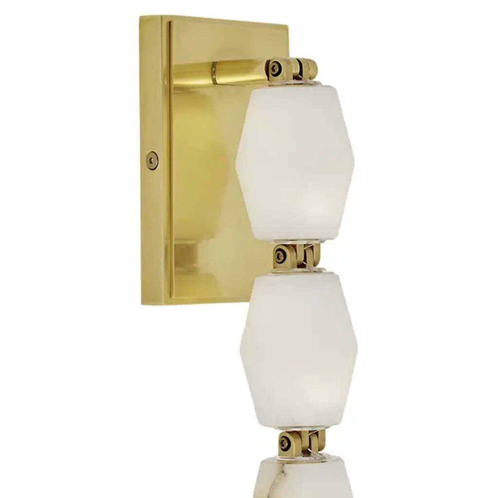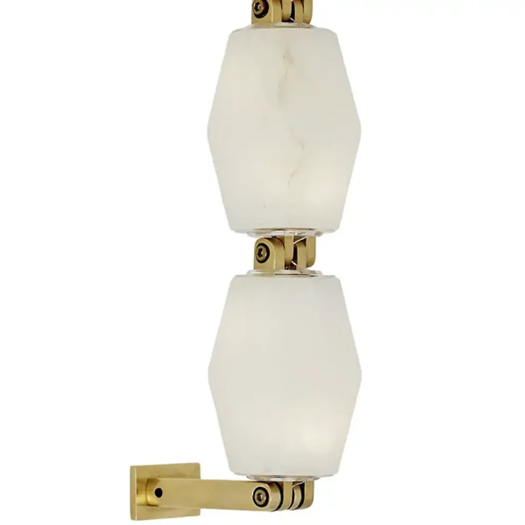 The Collier LED Wall Sconce from Visual Comfort Modern is a luxurious and sophisticated lighting fixture. Designed by Sean Lavin, it features solid faceted crystal fully encapsulating integrated LED modules connected by solid brass and offers customizable strand lengths to create a stunning light sculpture with stunning illumination. Crafted in the Czech Republic, the Collier LED Wall Sconce's natural brass connectors complement the crystal's beauty and support its structure, providing endless versatility.