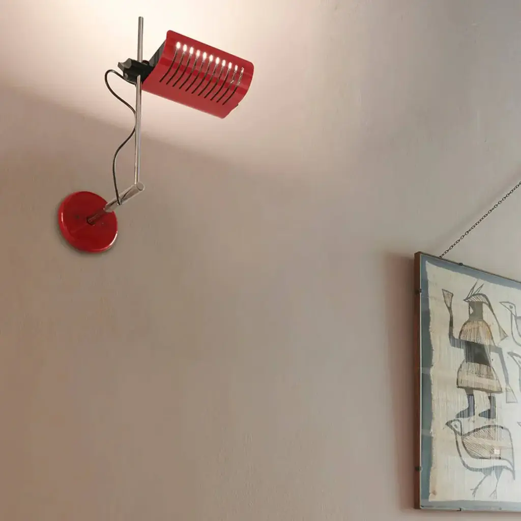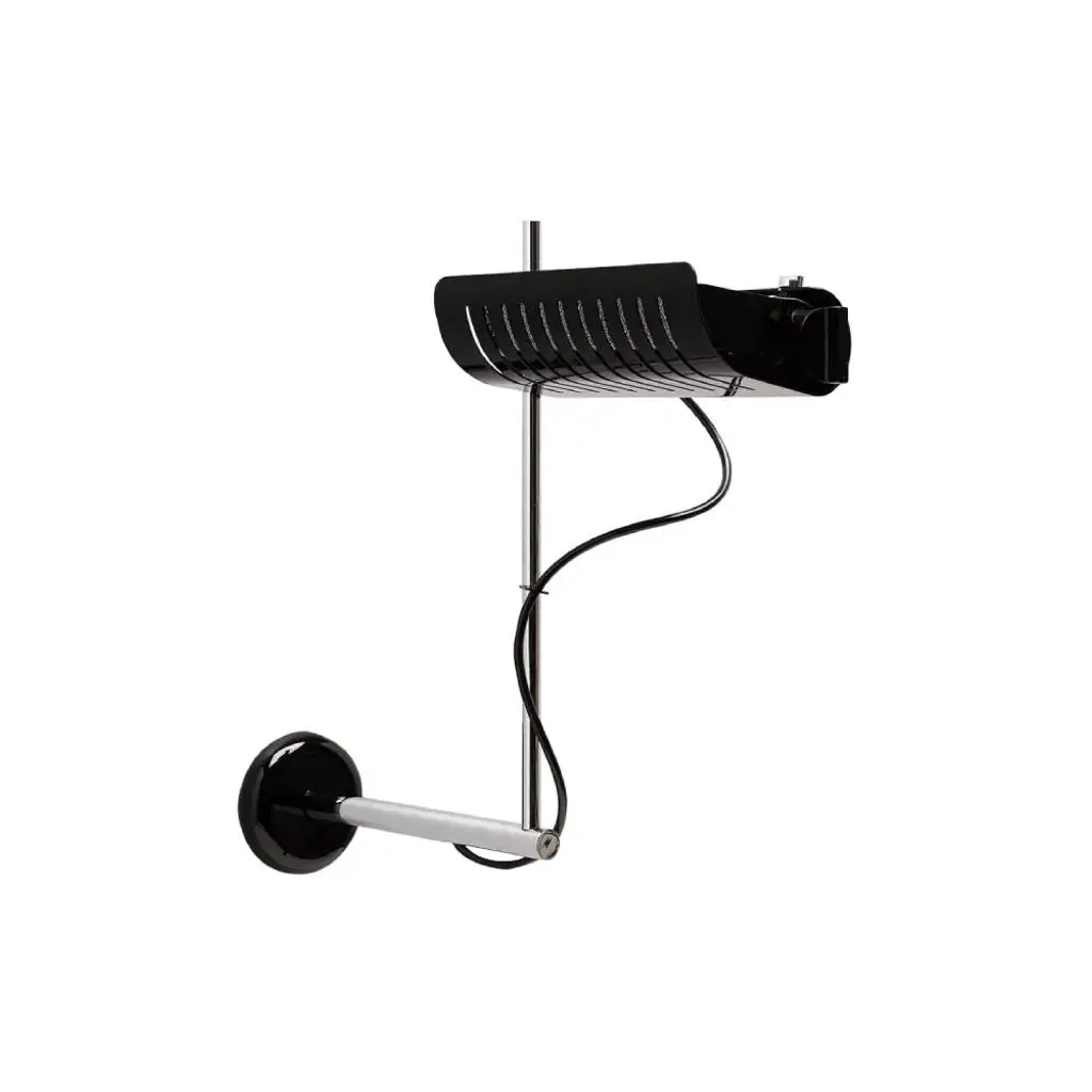 The Colombo Wall/Ceiling Lamp, designed by Joe Colombo in 1970, showcases a sleek, adjustable reflector crafted from lacquered aluminum, allowing for precise control of light direction. The chrome-plated stem and lacquered wall or ceiling mount add to its minimalist aesthetic. Originally among the first domestic lamps to utilize halogen bulbs, the Colombo Wall/Ceiling Lamp has been updated to accommodate modern LED technology, ensuring energy efficiency without compromising its iconic design.