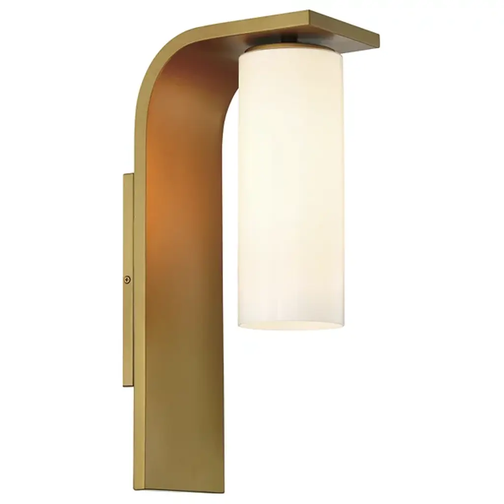 Simply graceful. Communicate your home’s sense of style before entering the front door with the Colonne Outdoor Wall Sconce from Eurofase. Its blend of form and function has a soft quality. This softness shows in the pleasant curve of the slim back panel. While soft on the eyes, the overarching support is strong as it’s crafted from powder-coated steel. Intriguing with a floating suspension, a white opal glass pops against the bold metal background. When turned on, a warm light glazes the glass and casts against the metal and wall. Light radiates out to create a soothing ambiance.