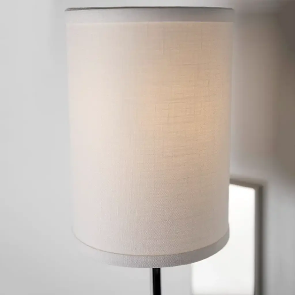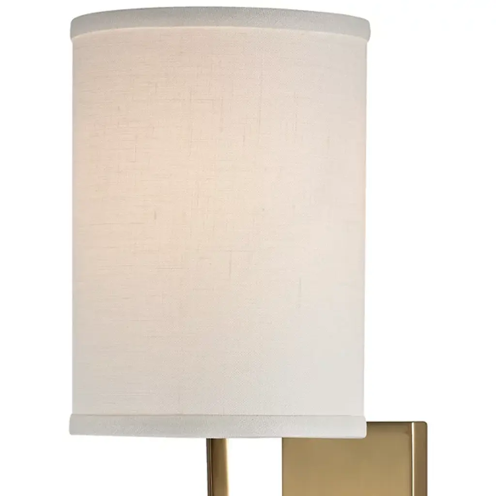 The playful, contemporary Colton Wall Sconce by Hudson Valley Lighting features a cylindrical linen shade that connects to its rectangular wall plate via a curved stem. The shade surrounds a single light source and, through its opacity, elicits a warm, soothing light. A charming addition to any modern living space. Available in several different living, non-solid finishes to match your personal style.