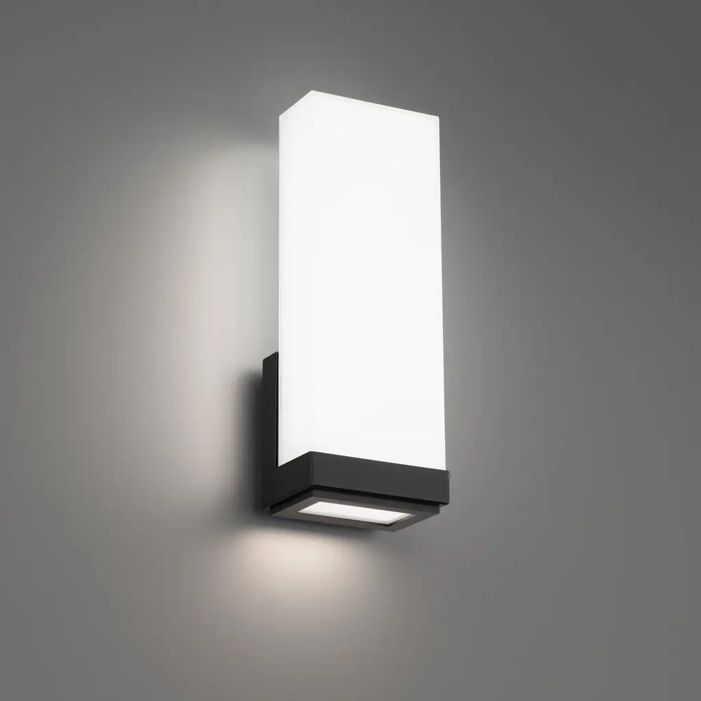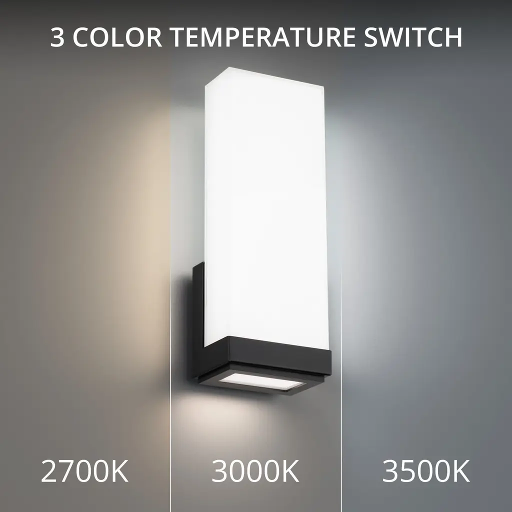 A geometric monolith block of luminosity. Coltrane is a 14-inch indoor wall sconce with a clean silk screened, mitered cut tempered glass. When illuminated Coltrane is a real simplistic and eye catching design. Choose an aged brass or black finish to complete your design. Energy efficient integrated LED's provide a long-lasting maintenance-free bright and even illumination. This ADA compliant, low profile design makes the Coltrane collection a great choice in upscale hospitality or residential homes. NEW: Tri-CCT technology features a switch inside the canopy that is accessible during installation and allows you to toggle color temperatures between 2700K Warm - 3000K Warm White - 3500 White to find and set the perfect color temperature for your space. This fixture is factory pre-set to a default 3000K setting for consistency and can be modified in the field during installation.