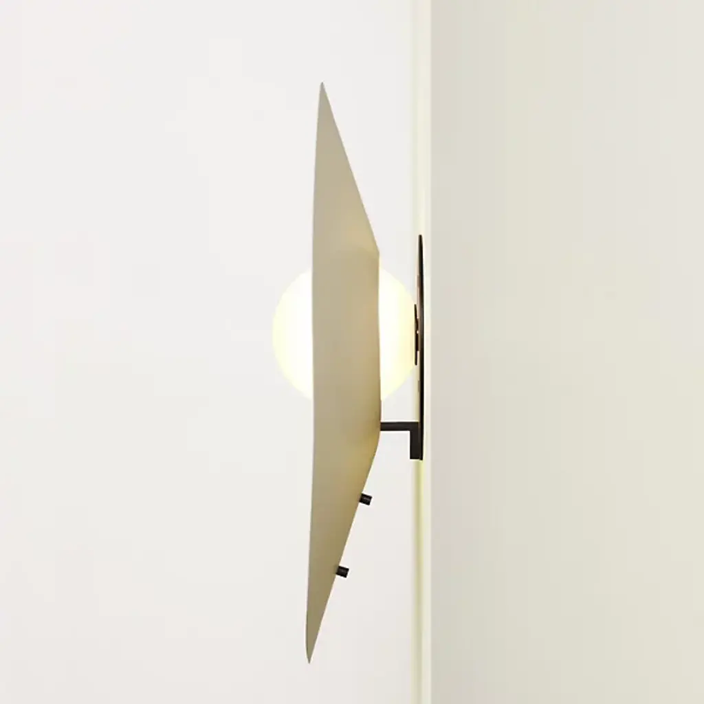 Let the Compas Wall Sconce from ATELIER de TROUP guide your eyes from one room to the other with its serene light and pleasant silhouette. The sconce’s compass-inspired design showcases ATELIER de TROUP’s storytelling approach. The Los Angeles-based studio brings its minimalist narrative-based objects to life with handcrafted techniques. Using only a single sheet of brass, local artisans create an elegant shade underlined by its clean, flowy silhouette. A single linear accent over the top suggests a compass’s magnetized needle with a refined touch. The real treasure is the pearl-like globe nestled inside. The glass shade awes in its handblown and sandblasted glass construction. Light permeates from the glass onto the shade, giving you a comfortable ambient glow and a stylish silhouette.