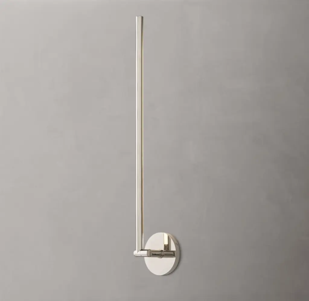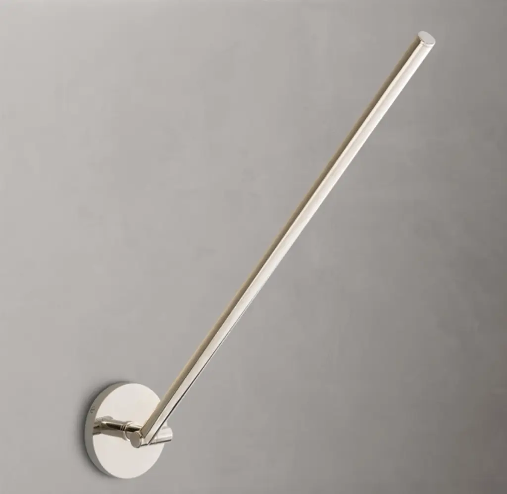 A study in refined minimalism, the brass Cona sconce offers reductionist form in a sleek silhouette. The slender arm houses an elongated LED panel, shining a swath of focused light that reflects on the wall or swivels outward.