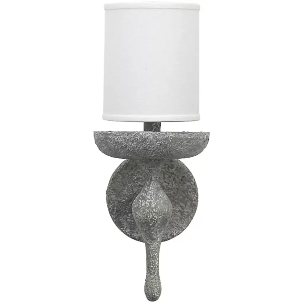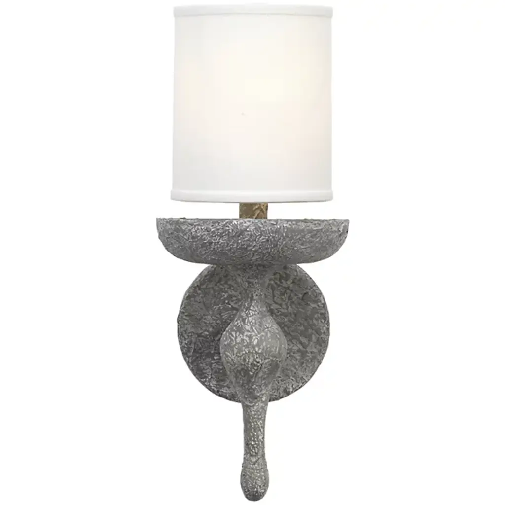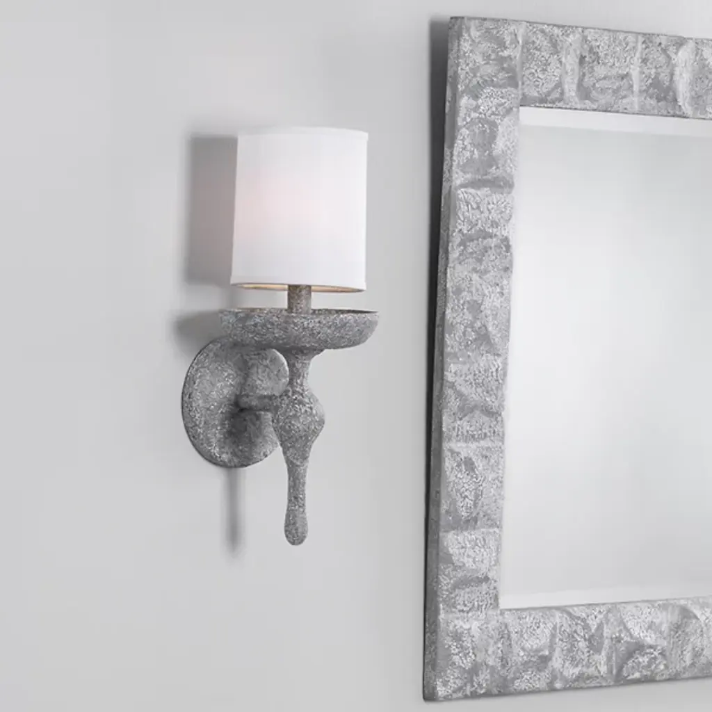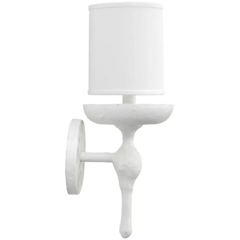 Coastal, casual, comfortable. Enhance your home’s inviting aesthetic with the Concord Wall Sconce from Jamie Young Co. The piece blends traditional and modern motifs for an eye-pleasing design. A compact circular backplate lets you place this piece in the tightest nooks. The sconce seduces with a plaster-coated construction, defined by its deep texture. The gritty surface offers an intriguing contrast with the crisp linen shade on top. When turned on, ambient light filters through the shade with a pleasant softness.