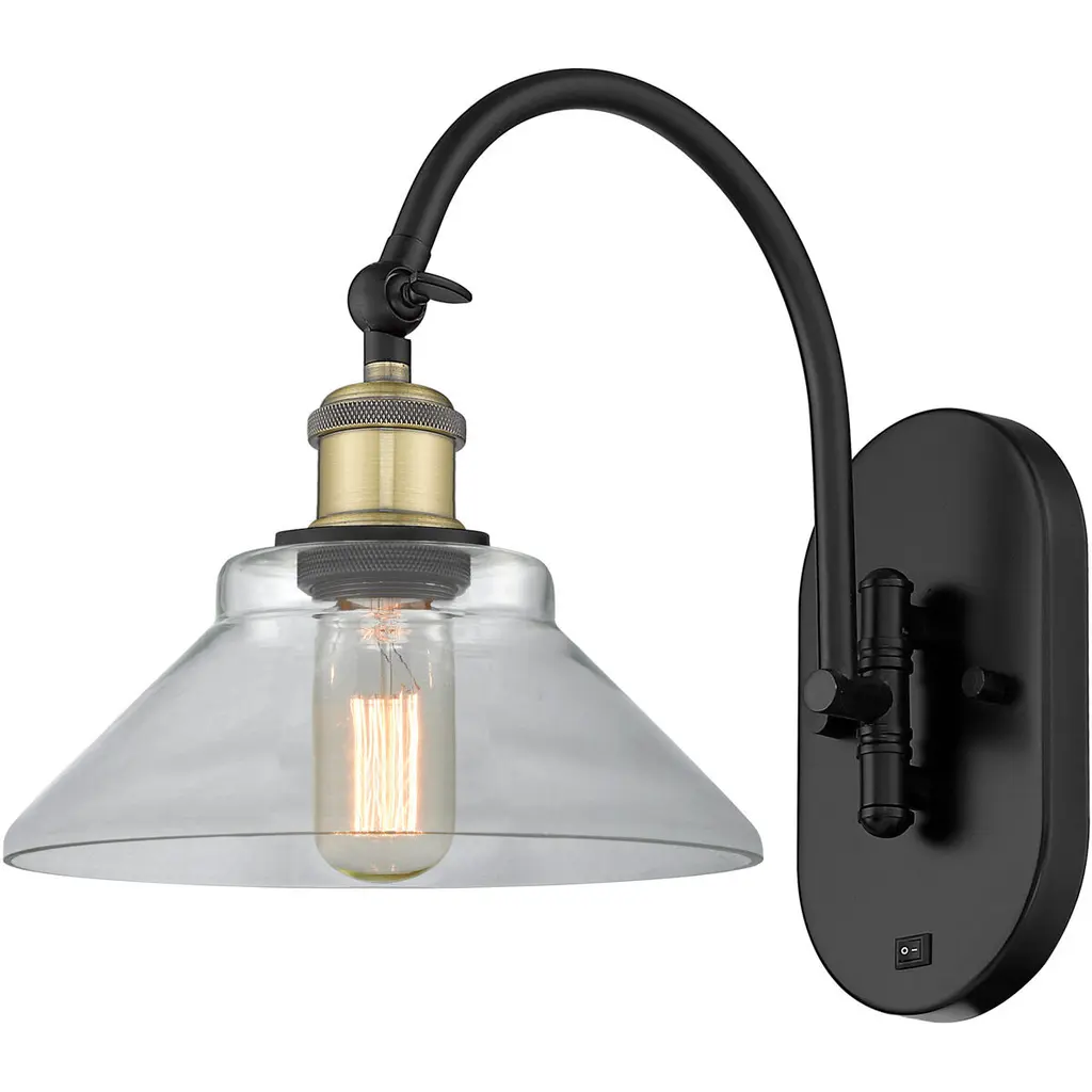 One of our largest and original collections, the Franklin Restoration is made up of a vast selection of heavy metal finishes and a large array of metal and glass shades that bring a touch of industrial into your home.Features:Solid brass 180 degree adjustable swivels with internal teeth that lock in at 5 degree intervalsFixture can be hung with bulbs facing up or down as a wall mount or facing down as a ceiling mount7.875" x 4.5" 2mm heavy cast backplateDistance from outlet opening to top of fixture 7.06 inchesRated for 100 watt maximumUL/CUL Damp RatedCompatible with Incandescent, LED, Fluorescent and Halogen bulbsThe arm swivels side to side at the baseNumber of Bulbs: 1Bulb Wattage: 3.5Bulb Type: LEDBulb Included: IncludedVoltage: 120Finish: Black Antique Brass Finish Shade Finish: Clear Shade