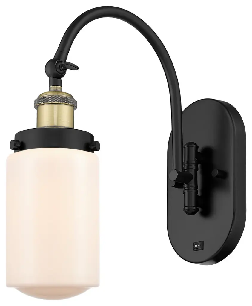 One of our largest and original collections, the Franklin Restoration is made up of a vast selection of heavy metal finishes and a large array of metal and glass shades that bring a touch of industrial into your home.Features:Solid brass 180 degree adjustable swivels with internal teeth that lock in at 5 degree intervalsFixture can be hung with bulbs facing up or down as a wall mount or facing down as a ceiling mount7.875" x 4.5" 2mm heavy cast backplateDistance from outlet opening to top of fixture 7.06 inchesRated for 100 watt maximumUL/CUL Damp RatedCompatible with Incandescent, LED, Fluorescent and Halogen bulbsThe arm swivels side to side at the baseNumber of Bulbs: 1Bulb Wattage: 3.5Bulb Type: LEDBulb Included: IncludedVoltage: 120Finish: Black Antique Brass Finish Shade Finish: Matte White Shade.