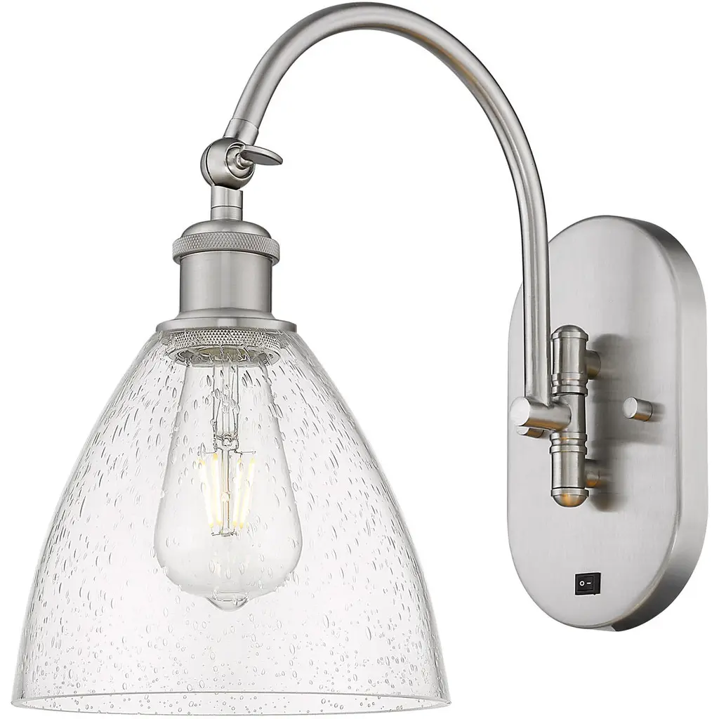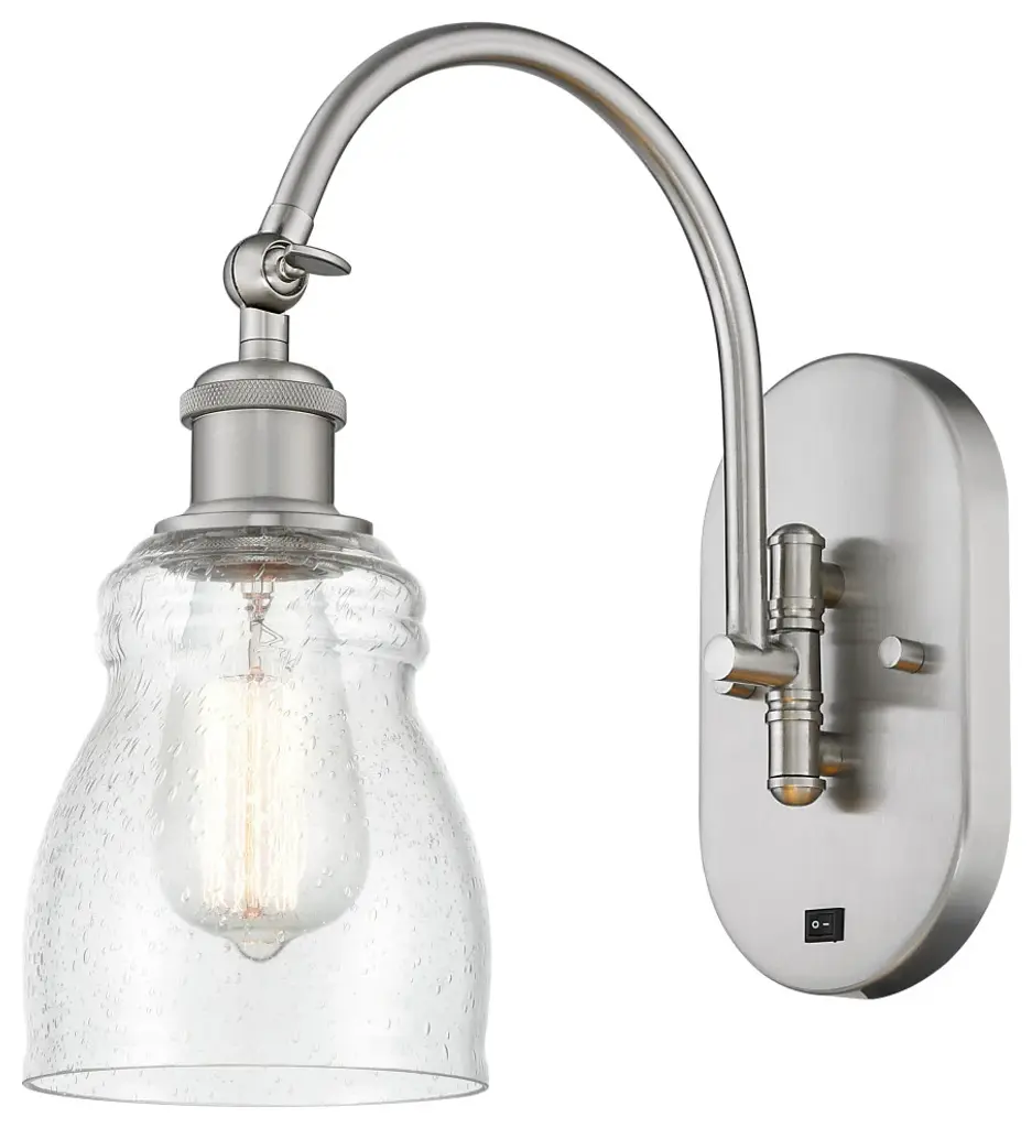 One of our largest and original collections, the Franklin Restoration is made up of a vast selection of heavy metal finishes and a large array of metal and glass shades that bring a touch of industrial into your home.Features:Solid brass 180 degree adjustable swivels with internal teeth that lock in at 5 degree intervalsFixture can be hung with bulbs facing up or down as a wall mount or facing down as a ceiling mount7.875" x 4.5" 2mm heavy cast backplateDistance from outlet opening to top of fixture 7.06 inchesRated for 100 watt maximumUL/CUL Damp RatedCompatible with Incandescent, LED, Fluorescent and Halogen bulbsThe arm swivels side to side at the baseNumber of Bulbs: 1Bulb Wattage: 3.5Bulb Type: LEDBulb Included: IncludedVoltage: 120Finish: Brushed Satin Nickel Finish Shade Finish: Clear Shade.