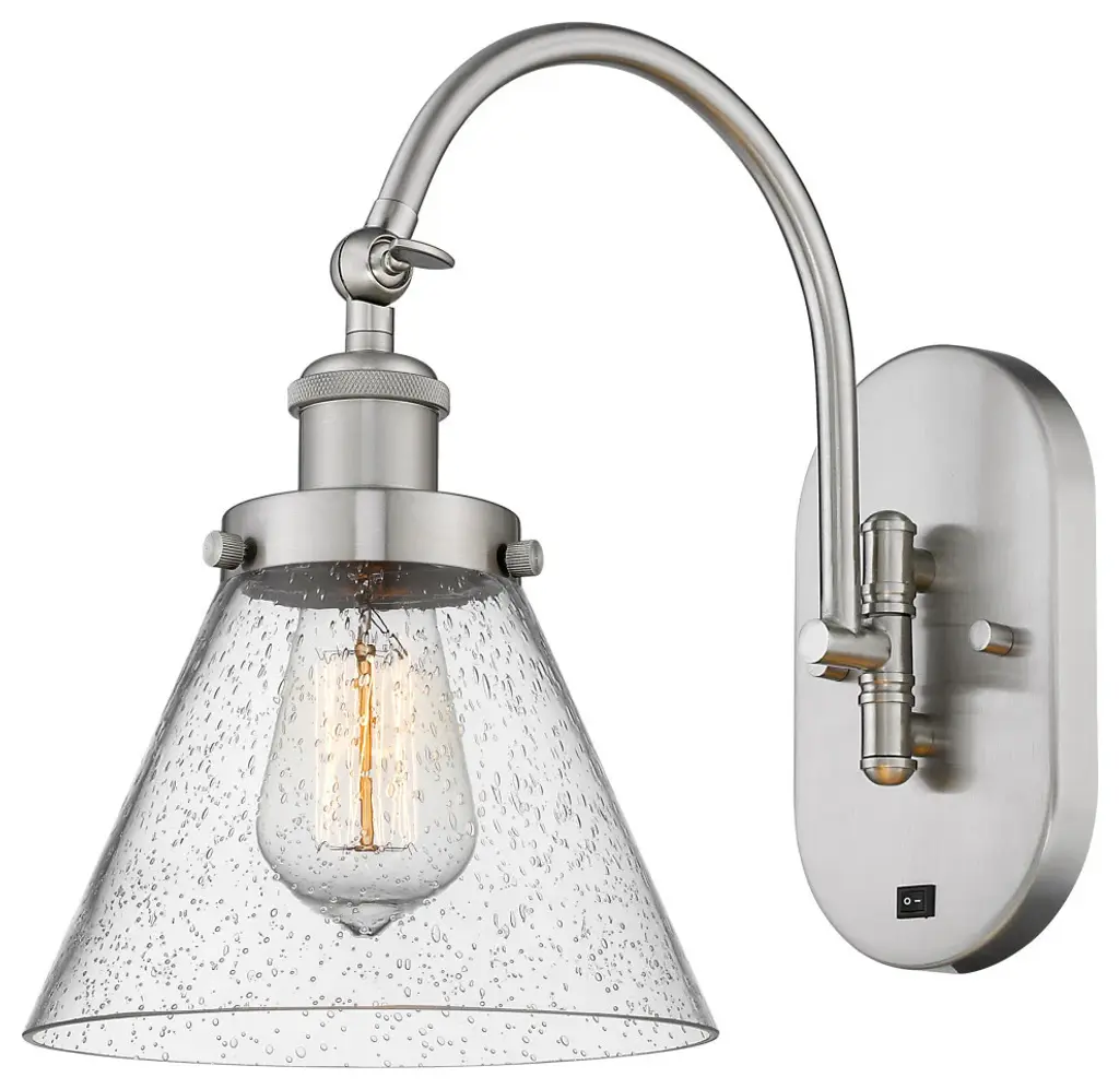 Cone Sconce, Brushed Satin Nickel, Clear, Clear