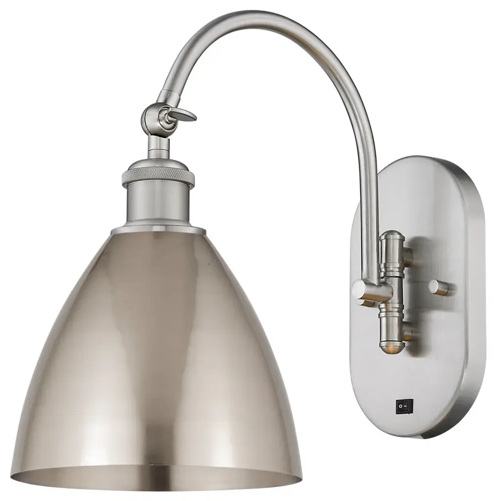 One of our largest and original collections, the Franklin Restoration is made up of a vast selection of heavy metal finishes and a large array of metal and glass shades that bring a touch of industrial into your home.Features:Solid brass 180 degree adjustable swivels with internal teeth that lock in at 5 degree intervalsFixture can be hung with bulbs facing up or down as a wall mount or facing down as a ceiling mount7.875" x 4.5" 2mm heavy cast backplateDistance from outlet opening to top of fixture 7.06 inchesRated for 100 watt maximumUL/CUL Damp RatedCompatible with Incandescent, LED, Fluorescent and Halogen bulbsThe arm swivels side to side at the baseNumber of Bulbs: 1Bulb Wattage: 3.5Bulb Type: LEDBulb Included: IncludedVoltage: 120Finish: Brushed Satin Nickel Finish Shade Finish: Matte White Shade.