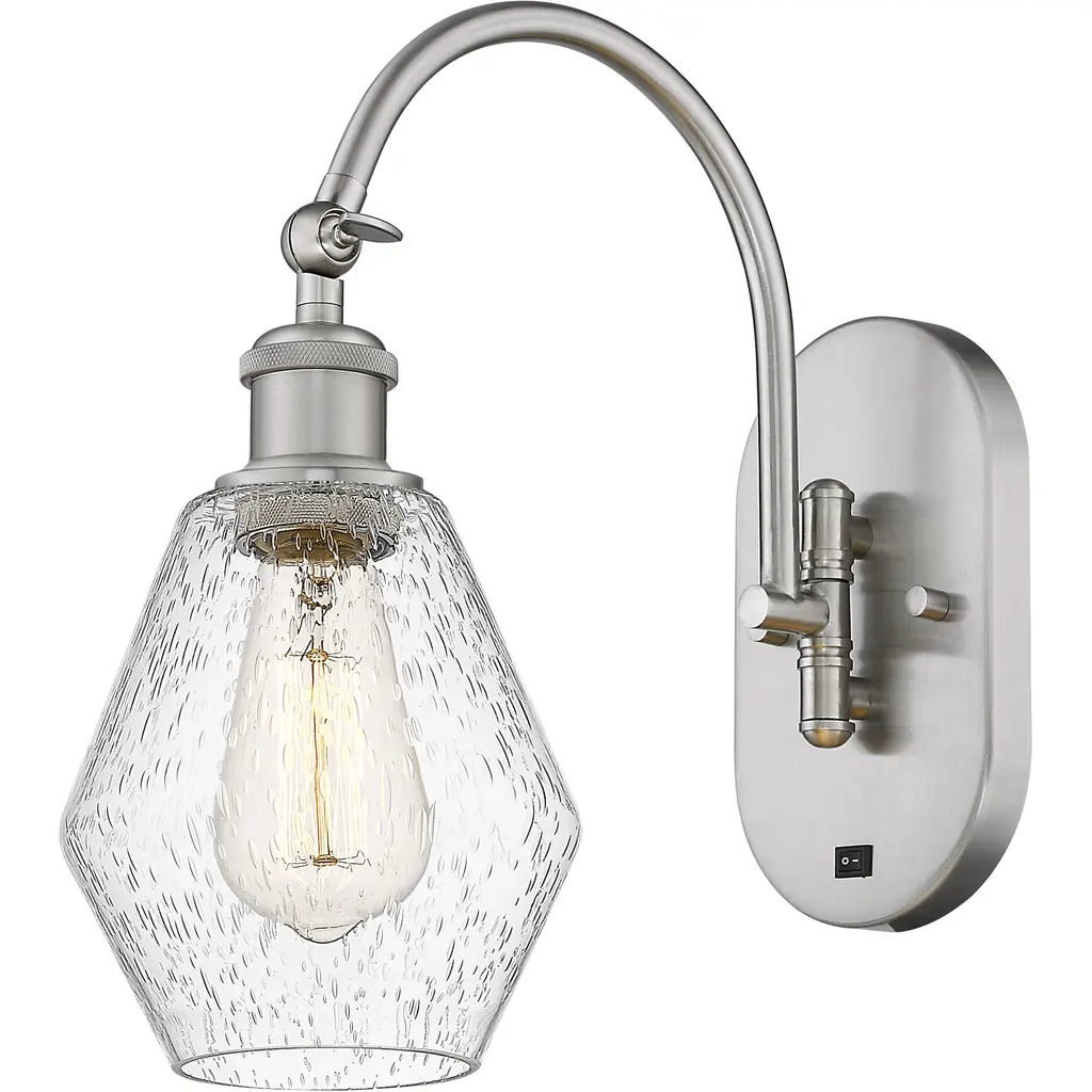 One of our largest and original collections, the Franklin Restoration is made up of a vast selection of heavy metal finishes and a large array of metal and glass shades that bring a touch of industrial into your home.Features:Solid brass 180 degree adjustable swivels with internal teeth that lock in at 5 degree intervalsFixture can be hung with bulbs facing up or down as a wall mount or facing down as a ceiling mount7.875" x 4.5" 2mm heavy cast backplateDistance from outlet opening to top of fixture 7.06 inchesRated for 100 watt maximumUL/CUL Damp RatedCompatible with Incandescent, LED, Fluorescent and Halogen bulbsThe arm swivels side to side at the baseNumber of Bulbs: 1Bulb Wattage: 3.5Bulb Type: LEDBulb Included: IncludedVoltage: 120Finish: Brushed Satin Nickel Finish Shade Finish: Seedy Shade.