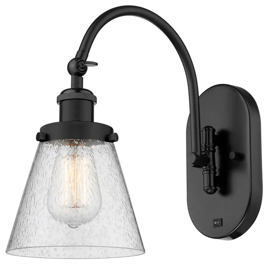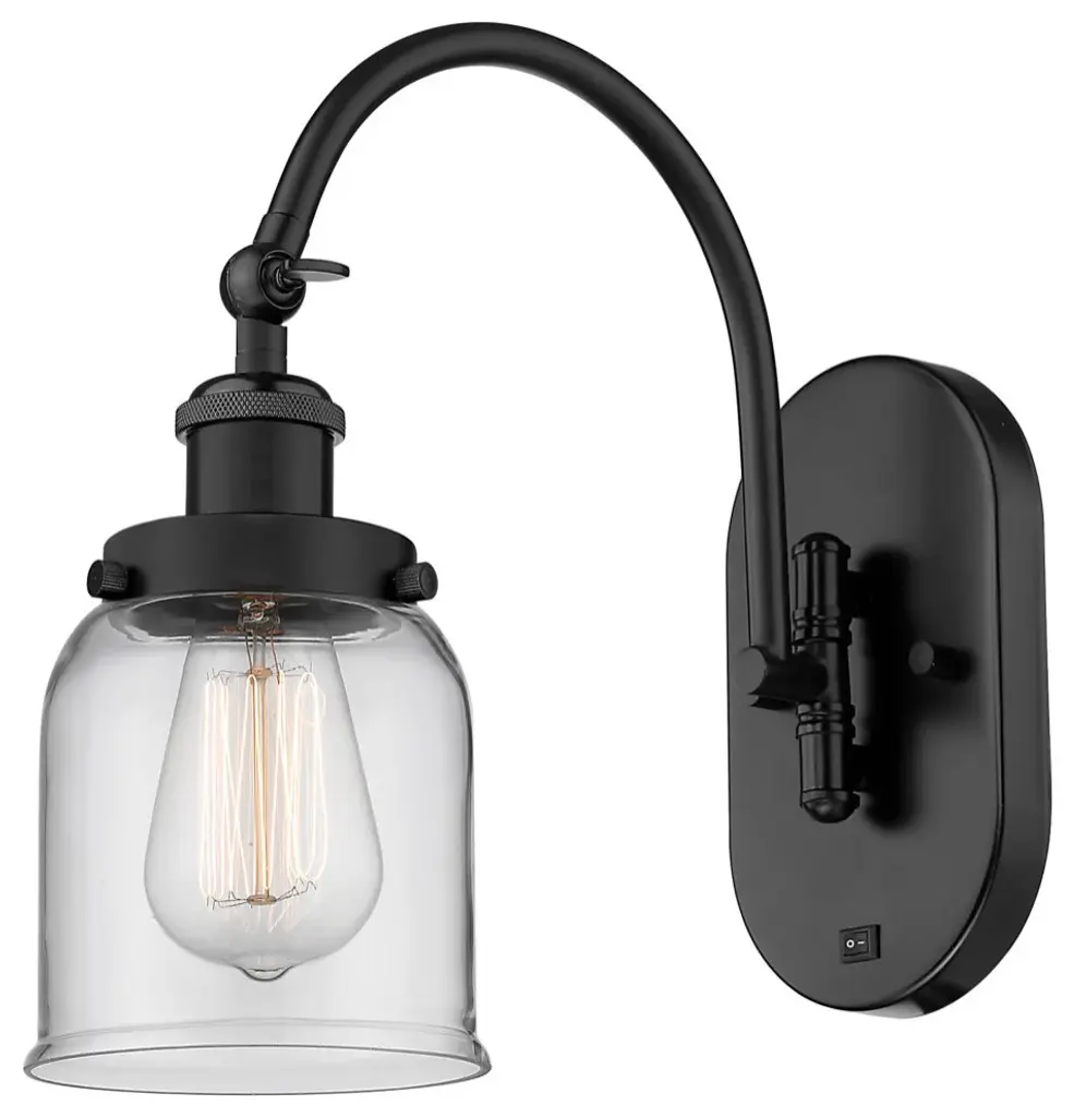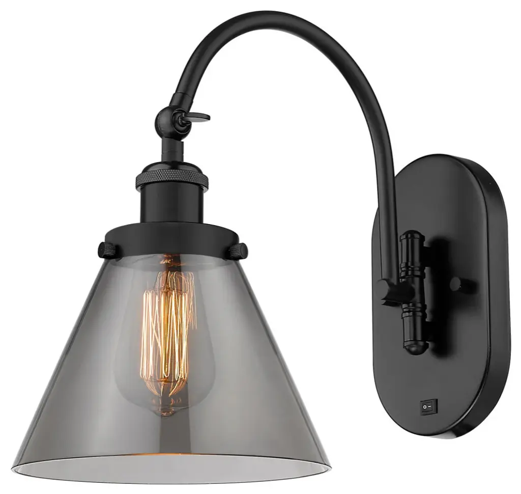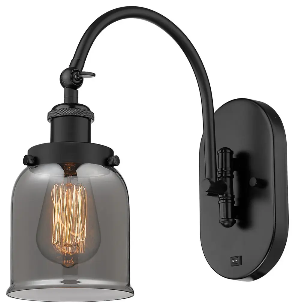 One of our largest and original collections, the Franklin Restoration is made up of a vast selection of heavy metal finishes and a large array of metal and glass shades that bring a touch of industrial into your home.Features:Solid brass 180 degree adjustable swivels with internal teeth that lock in at 5 degree intervalsFixture can be hung with bulbs facing up or down as a wall mount or facing down as a ceiling mount7.875" x 4.5" 2mm heavy cast backplateDistance from outlet opening to top of fixture 7.06 inchesRated for 100 watt maximumUL/CUL Damp RatedCompatible with Incandescent, LED, Fluorescent and Halogen bulbsThe arm swivels side to side at the baseNumber of Bulbs: 1Bulb Wattage: 3.5Bulb Type: LEDBulb Included: IncludedVoltage: 120Finish: Matte Black Finish Shade Finish: Plated Smoke Shade.