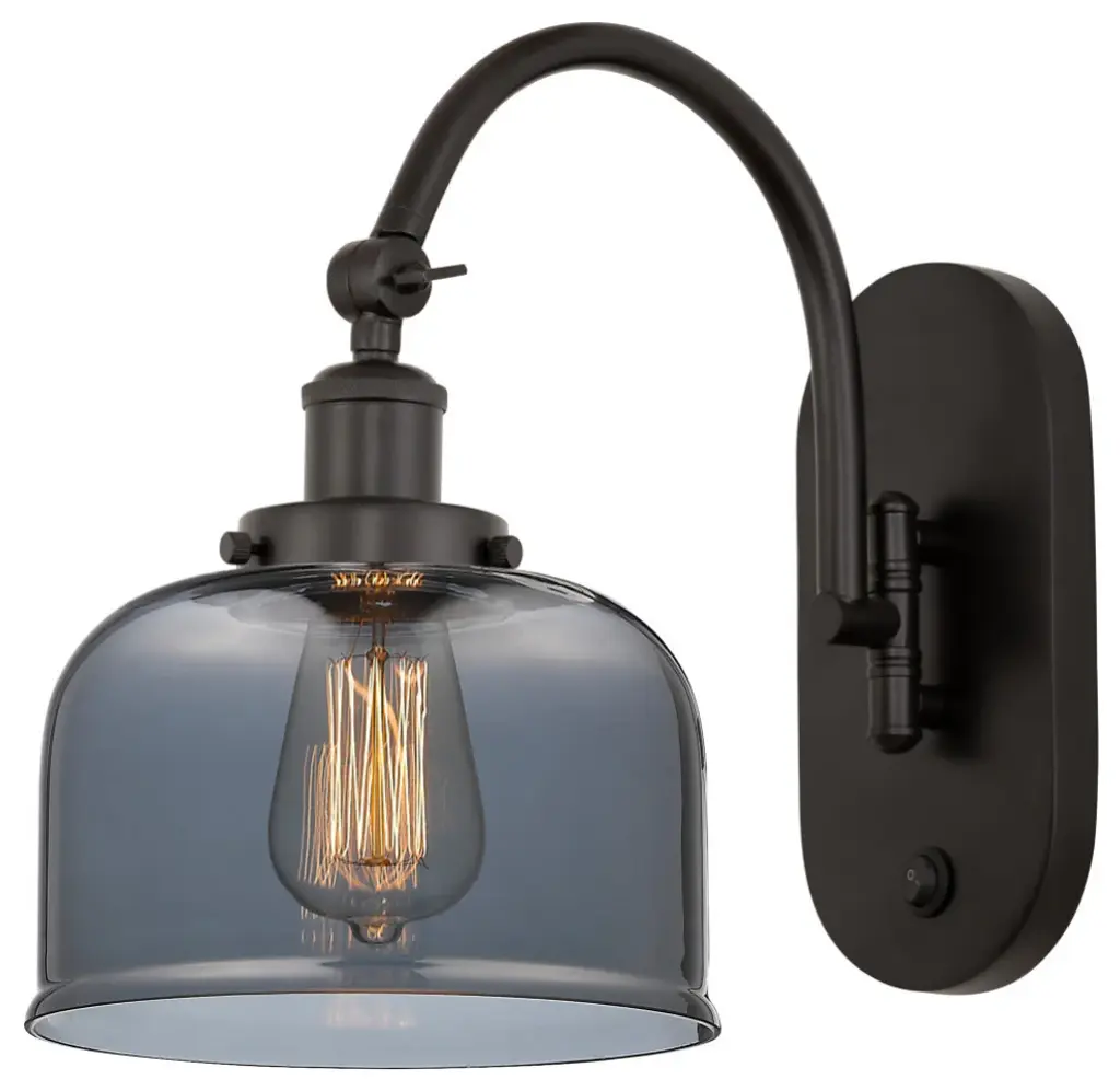 One of our largest and original collections, the Franklin Restoration is made up of a vast selection of heavy metal finishes and a large array of metal and glass shades that bring a touch of industrial into your home.Features:Solid brass 180 degree adjustable swivels with internal teeth that lock in at 5 degree intervalsFixture can be hung with bulbs facing up or down as a wall mount or facing down as a ceiling mount7.875" x 4.5" 2mm heavy cast backplateDistance from outlet opening to top of fixture 7.06 inchesRated for 100 watt maximumUL/CUL Damp RatedCompatible with Incandescent, LED, Fluorescent and Halogen bulbsThe arm swivels side to side at the baseNumber of Bulbs: 1Bulb Wattage: 3.5Bulb Type: LEDBulb Included: IncludedVoltage: 120Finish: Oil Rubbed Bronze Finish Shade Finish: Plated Smoke Shade
