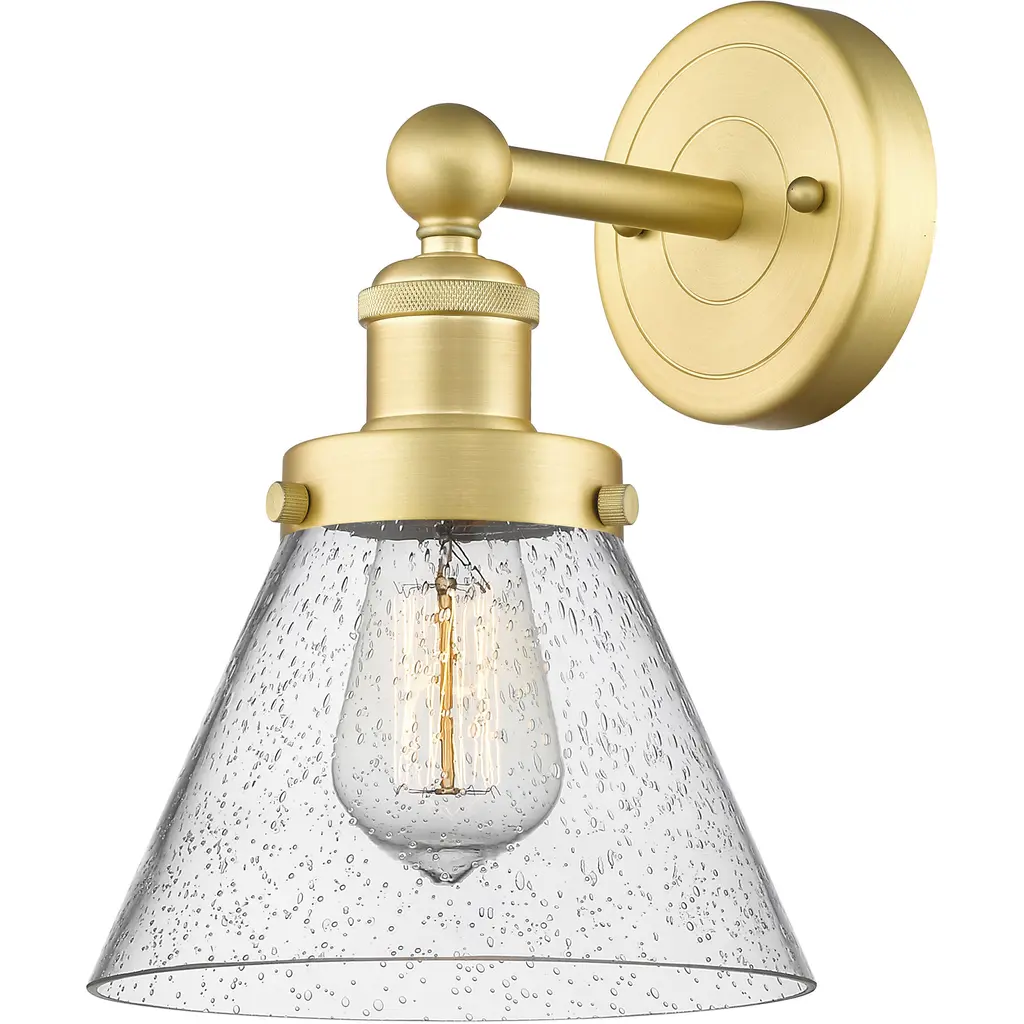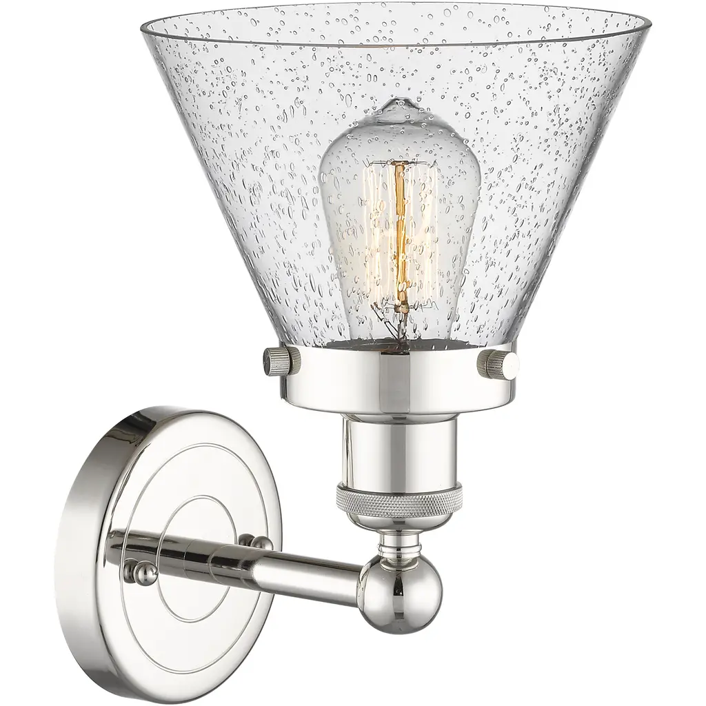 Large Cone - 1 Light 7" Sconce - Polished Nickel Finish - Seedy Shade
