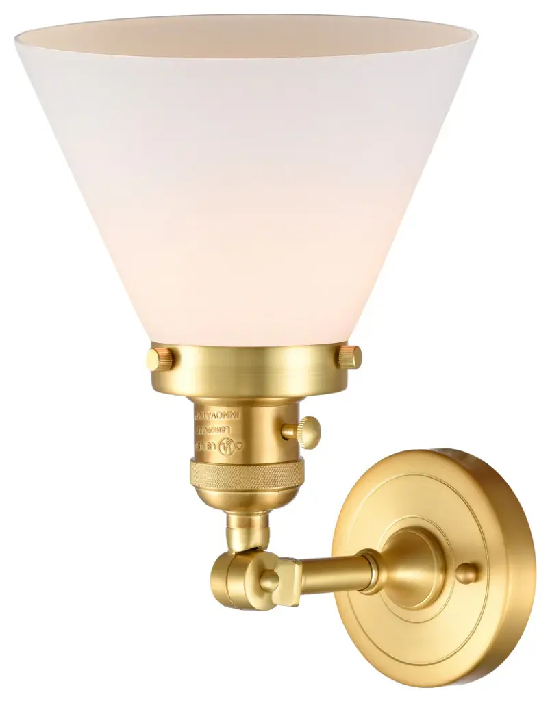 Cone Sconce With Switch, Satin Gold, Matte White