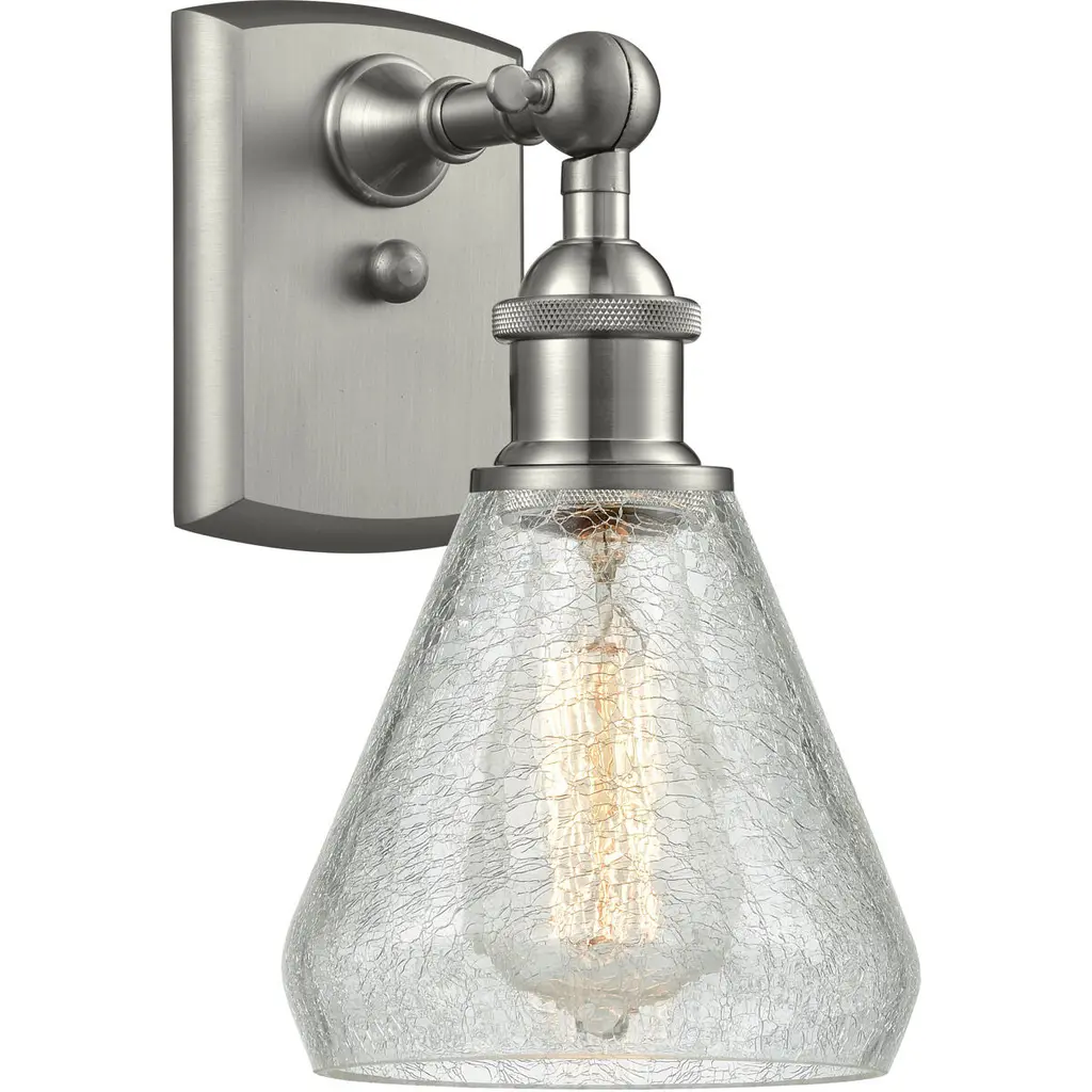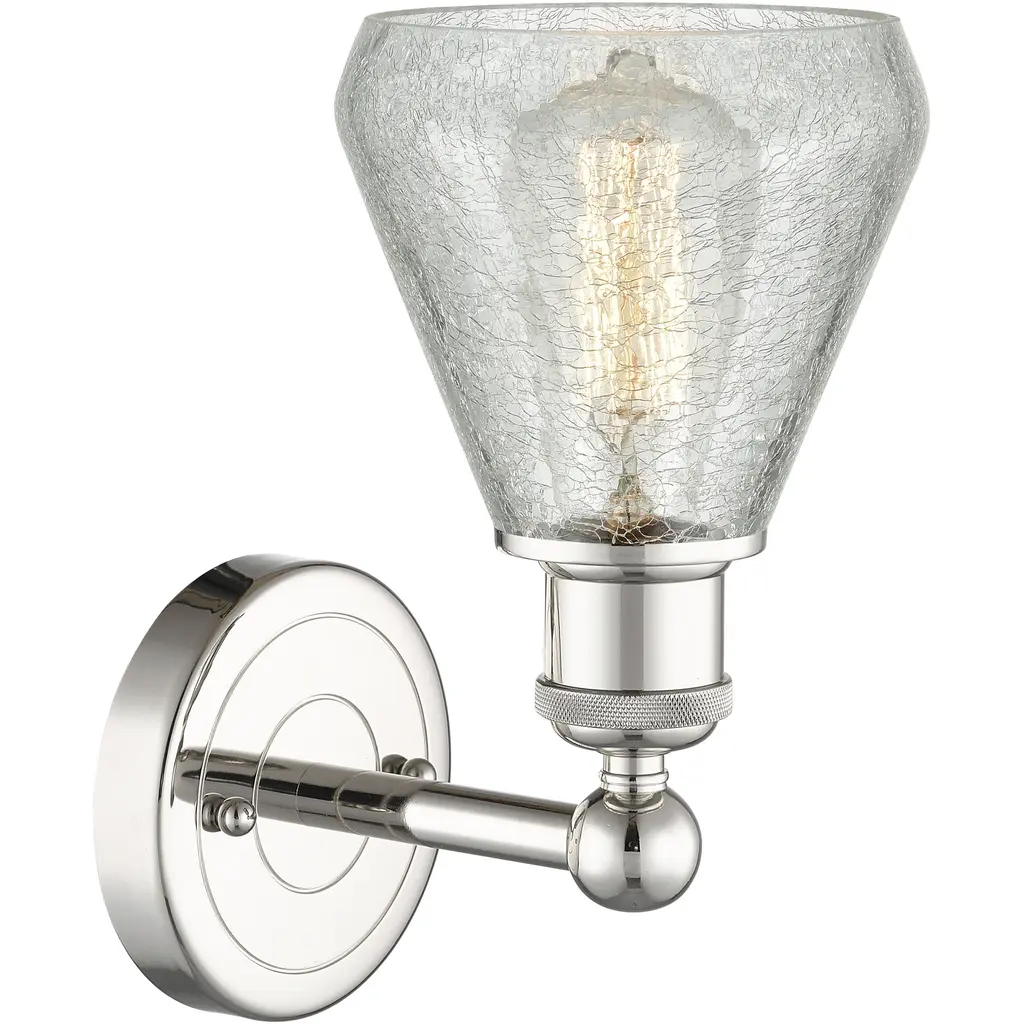 Conesus - 1 Light 6" Sconce - Polished Nickel Finish - Clear Crackle Shade
