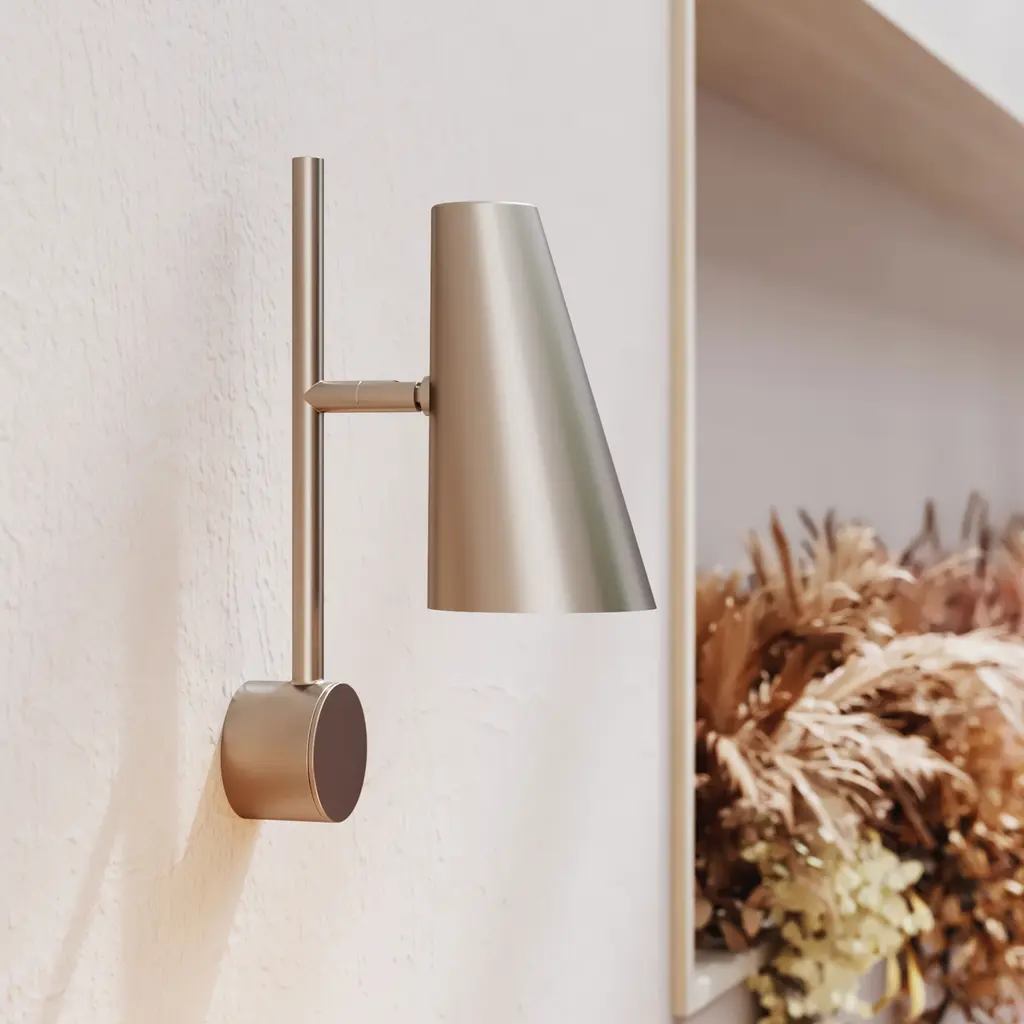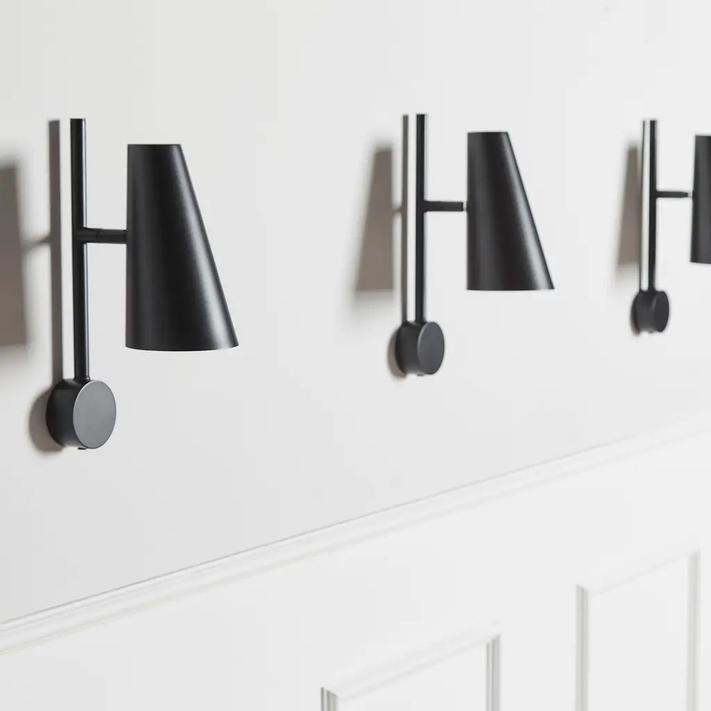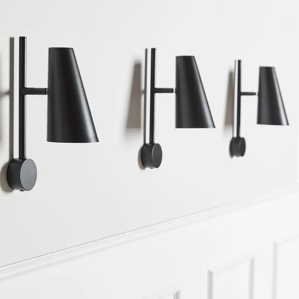 Elevate your space with the Cono Wall Lamp by Woud, designed by the renowned Benny Frandsen. This wall-mounted luminaire is a study in minimalist elegance, capturing attention with its iconic conoid shape that harkens back to the focused intensity of stage lighting. Available in two refined finishes, the lamp offers a choice between the understated sophistication of satin gray and the bold statement of matte black. Each finish is meticulously applied to a sturdy metal construction, ensuring both beauty and durability. The Cono Wall Lamp is engineered for functionality, featuring an adjustable shade that pivots to direct light precisely where it is needed, whether illuminating a favorite artwork or casting an intimate glow over a hallway. The design is completed with a discreet fabric-covered cord that adds a touch of luxury. With its sleek profile and timeless appeal, the Cono Wall Lamp is an exquisite addition that blends seamlessly into both modern and traditional interiors.