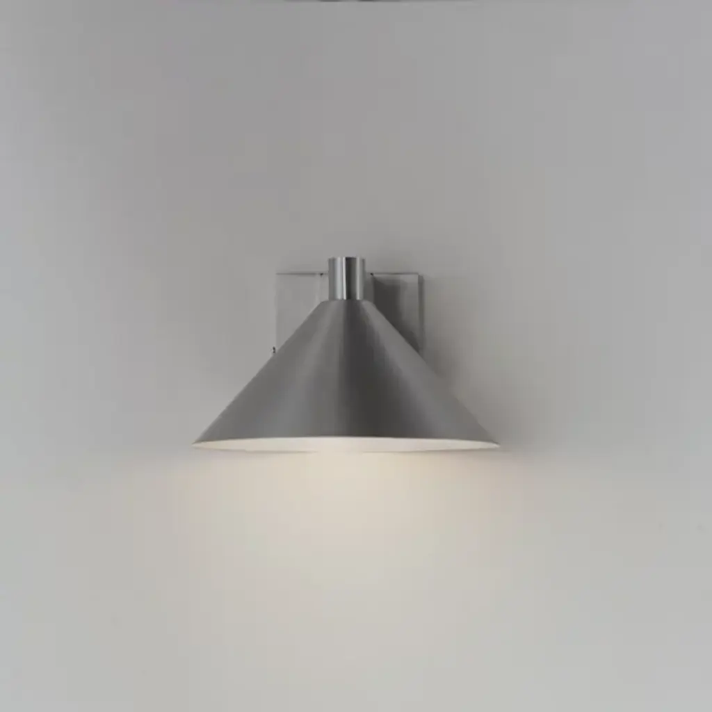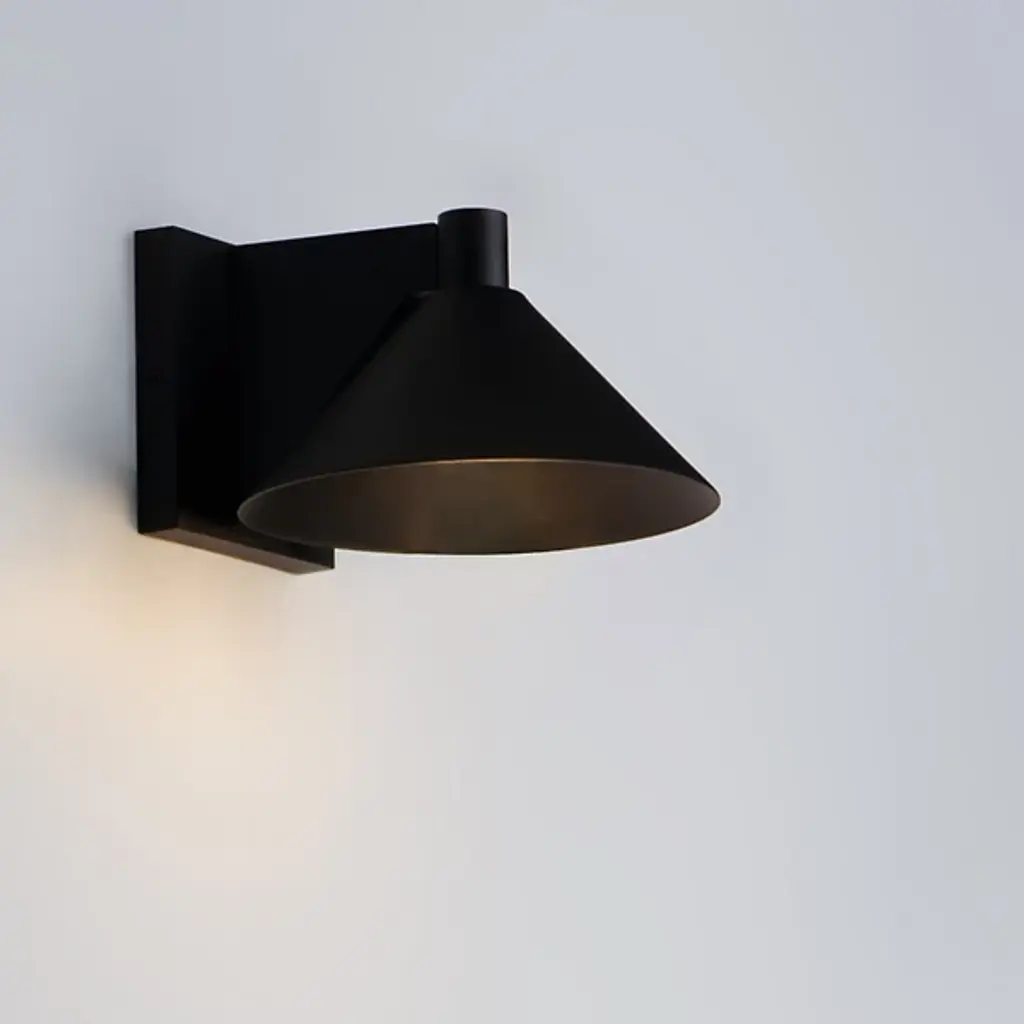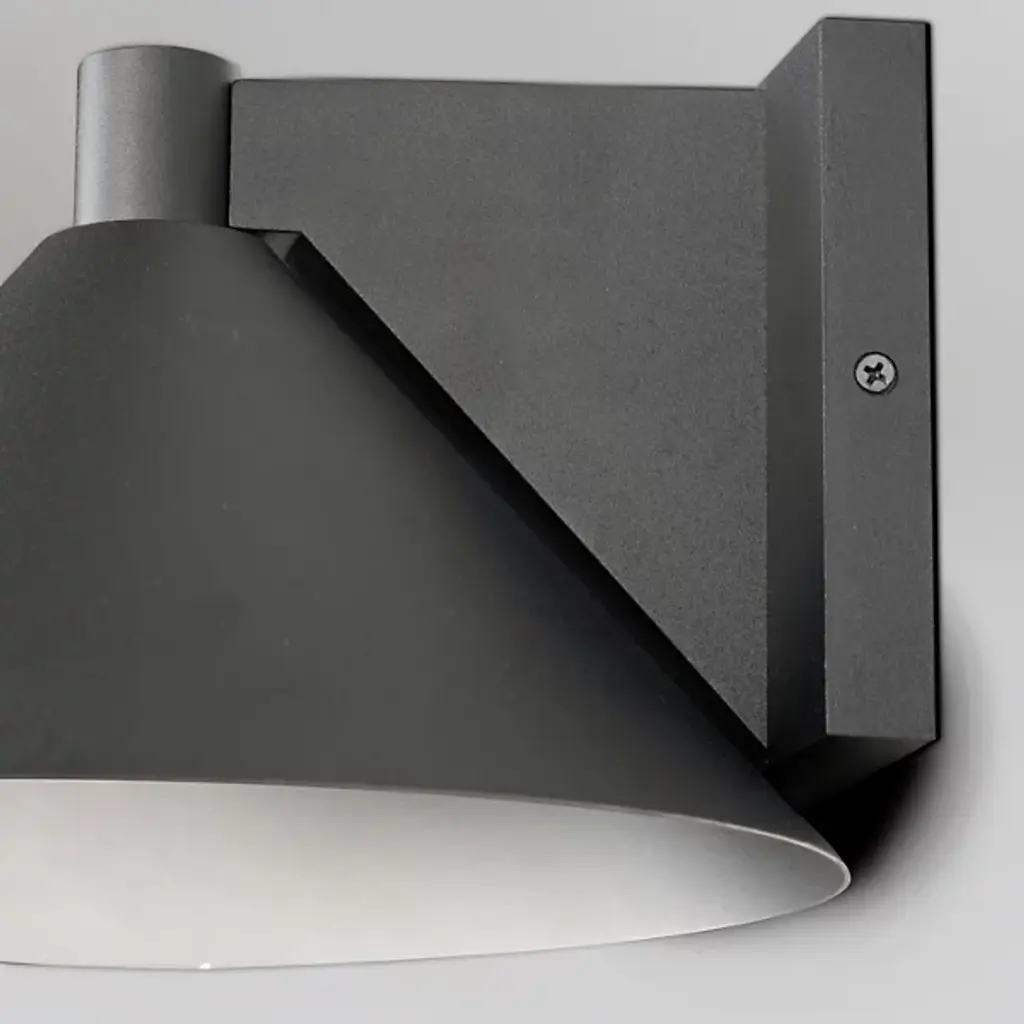The Conoid LED Outdoor Wall Sconce by Maxim Lighting has a structured, clean look that is at home in a range of locations and with a variety of architectural styles. Anchored by a die-cast aluminum frame that matches up with the angle of the tapered aluminum shade it supports, this outdoor wall sconce has a simple yet bold look that brings a practical touch to its environment. Casting an even layer of energy-efficient illumination onto surroundings, this design is completed with a uniform finish and helps to create a bright, welcoming space.
