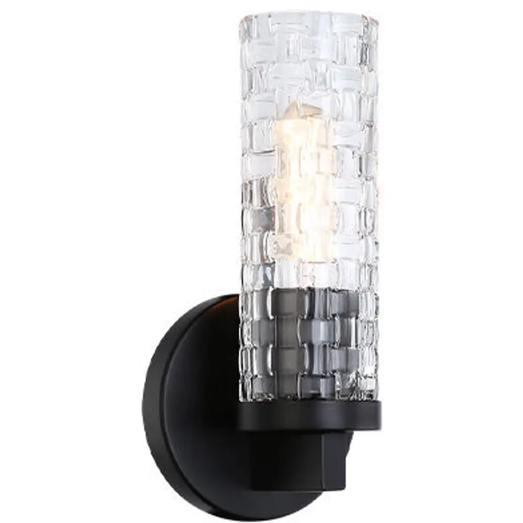 Conor 1-Light Bath Sconce, Black With Clear Shade