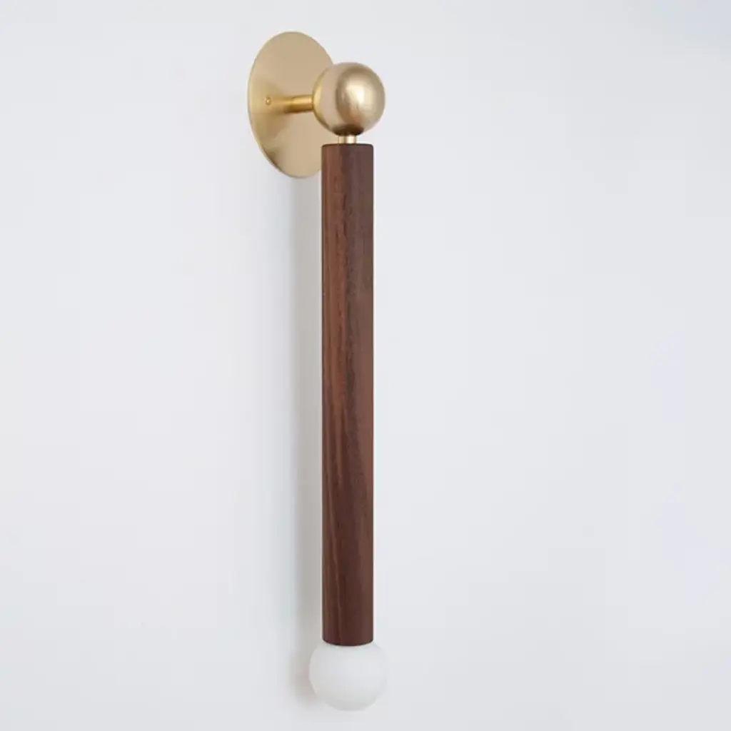 Bring contemporary style to your surroundings with the Constellation Wall Sconce by hollis+morris. This streamlined wall sconce is the work of designer Mischa Couvrette. Couvrette works with an astronomical motif, presenting a globe-shaped shade of handblown glass which is vibrantly lit by an LED. A cylindrical frame of solid wood is elegantly crowned by a steel sphere that attaches to an arm extending from a backplate at your wall. Pair the Constellation Wall Sconce with an ELV dimmer to easily adjust this fixture’s brightness level.