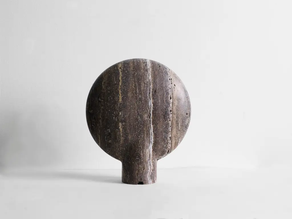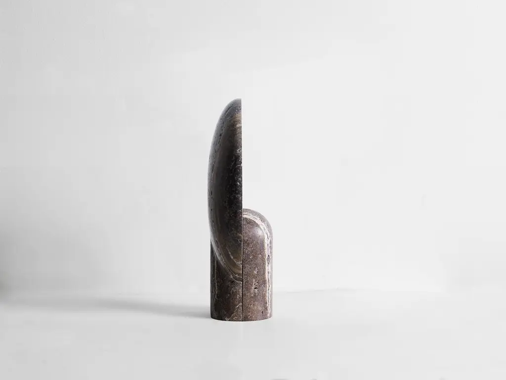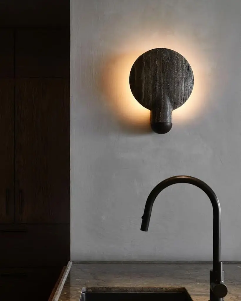 Black Travertine Surface Sconce by Henry WilsonDimensions: W 30 x D 11 x H 35 cmMaterials: Black TravertineThis sculptural item is handmade in Sydney, Australia.The surface sconce in Calacatta marble is an ambient, sculptural light carved in two halves from solid stone.Each light is manufactured in natural stone, meaning variations of the pattern in the stone will occur from piece to piece.Dimensions: 350 x 300 x 100mm Comes boxed with wiring. Henry Wilson's work combines a rational, democratic utility with an element of sculptural expression. There is a clear form and function in our products, but it’s important they also have feeling. We are interested in the awkward beauty that comes from something made by hand. We like to explore how imperfection can be introduced into an Industrial process, to make something at scale that retains a sense of individual charm.Permanent collections and exhibitions- Museum of Applied Arts and Sciences, Sydney, Australia- Art Gallery of Western Australia, Perth, Australia- 'Sempering' XXI Triennale, MUDEC, 2016, Milan, Italy.All our lamps can be wired according to each country. If sold to the USA it will be wired for the USA for instance.