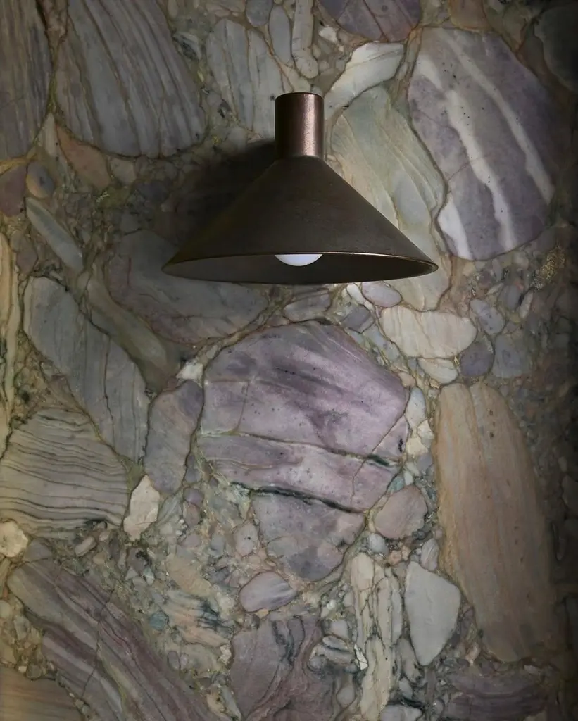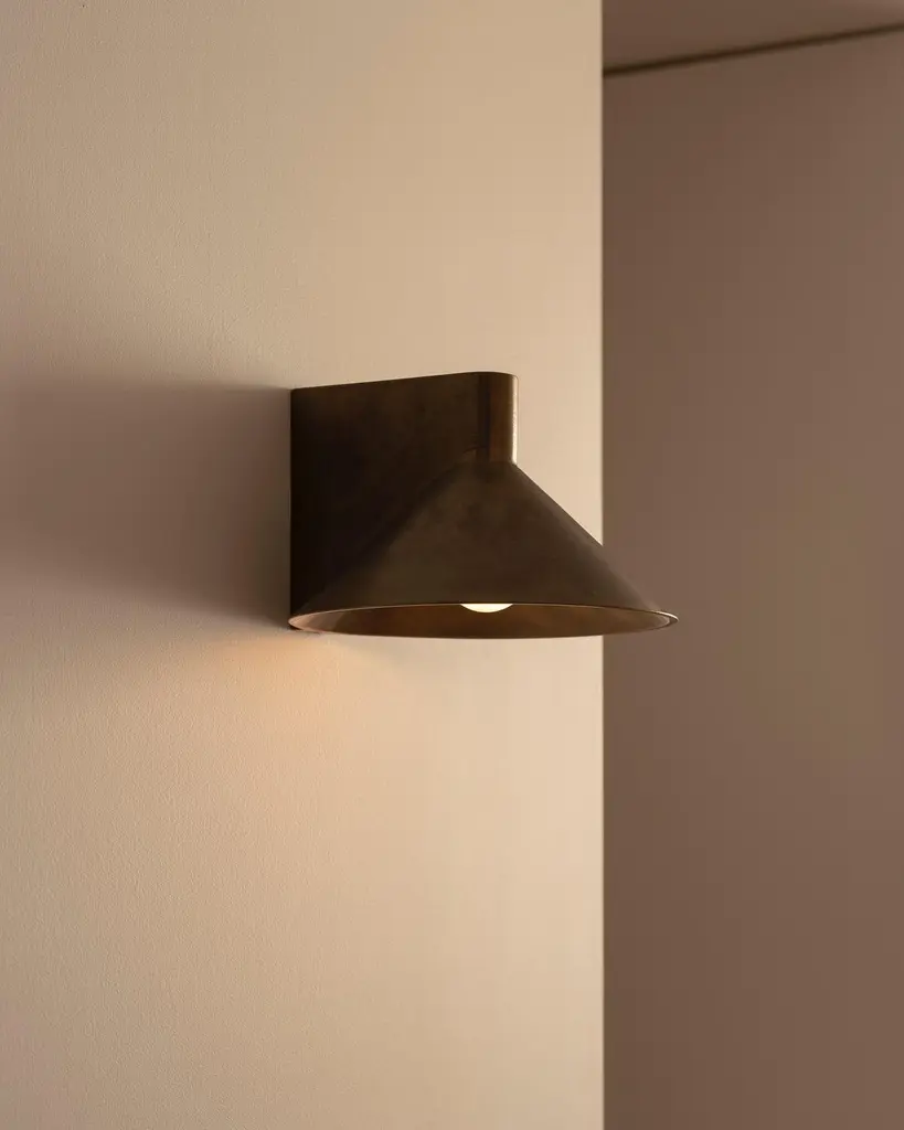 Blackened Bronze Conical Up Wall Light by Henry WilsonDimensions: W 19 x D 20 x H 12 cmMaterials: BronzeLost wax cast in solid bronze, the conical wall light is our most complex production casting to date. Each piece is hand finished and can be mounted to any surface as an up or down light, using a discrete plate.Conical wall light is manufactured in small batches, meaning slight variations will occur from piece to piece. Production marks may include slight pour ripples or surface pitting. It will arrive with a blackened finish which will oxidize and continue to darken over time to reveal a distinctive patina. Simply use a metal polish to restore a like-new finish.Henry Wilson's work combines a rational, democratic utility with an element of sculptural expression. There is a clear form and function in our products, but it’s important they also have feeling. We are interested in the awkward beauty that comes from something made by hand. We like to explore how imperfection can be introduced into an Industrial process, to make something at scale that retains a sense of individual charm.Permanent collections and exhibitions- Museum of Applied Arts and Sciences, Sydney, Australia- Art Gallery of Western Australia, Perth, Australia- 'Sempering' XXI Triennale, MUDEC, 2016, Milan, Italy.All our lamps can be wired according to each country. If sold to the USA it will be wired for the USA for instance.
