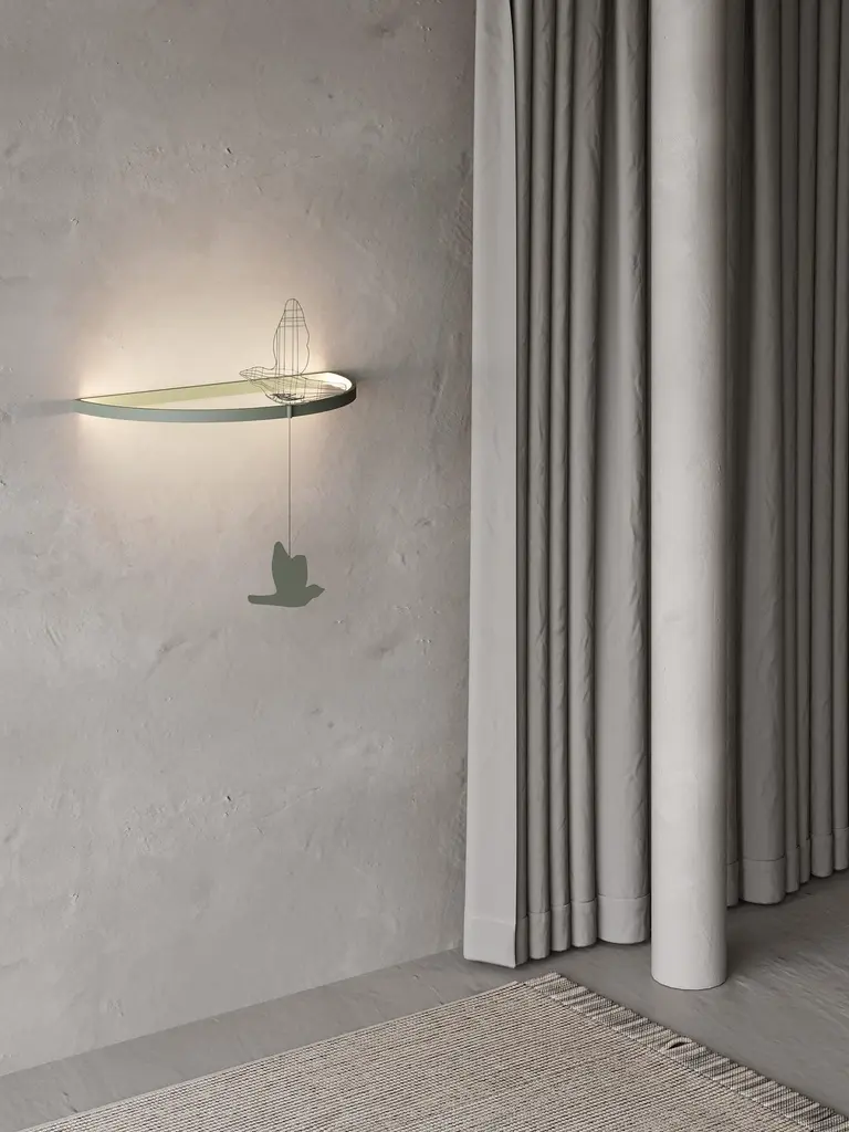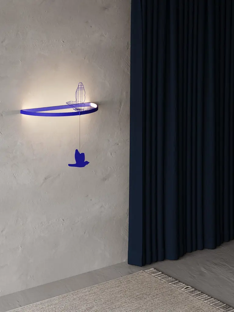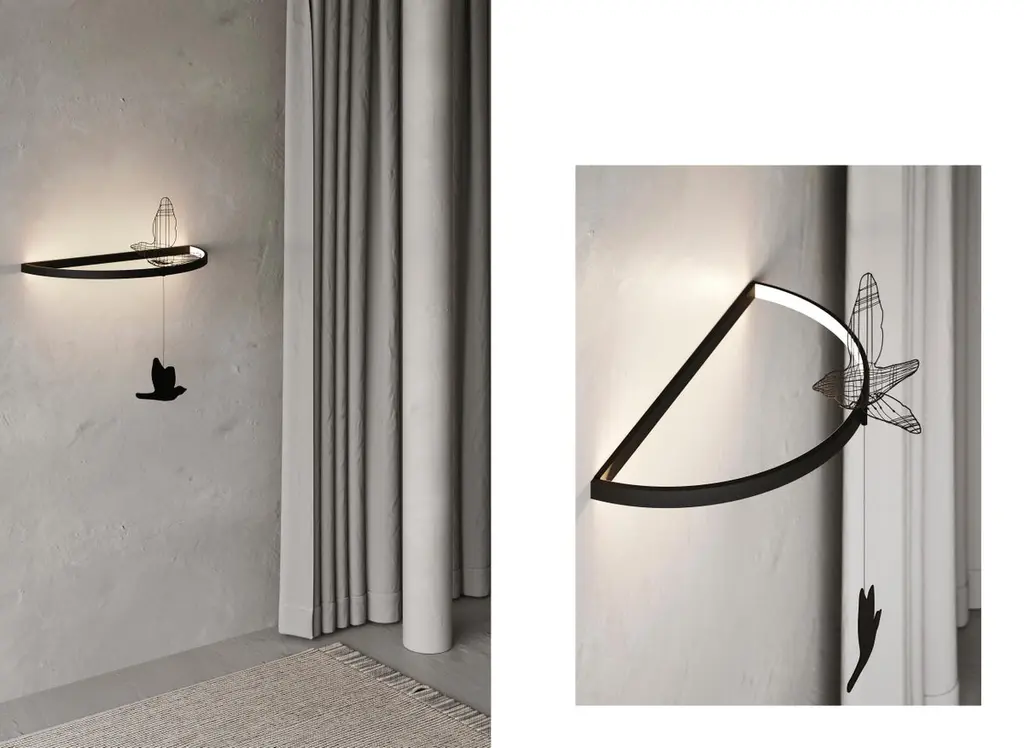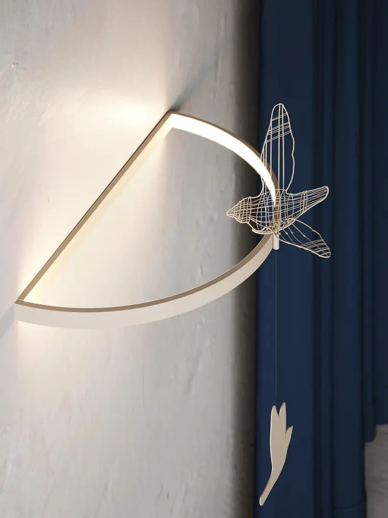 Contemporary Handcrafted Wall Lamp "Flight Shadows" With Animal Decoration