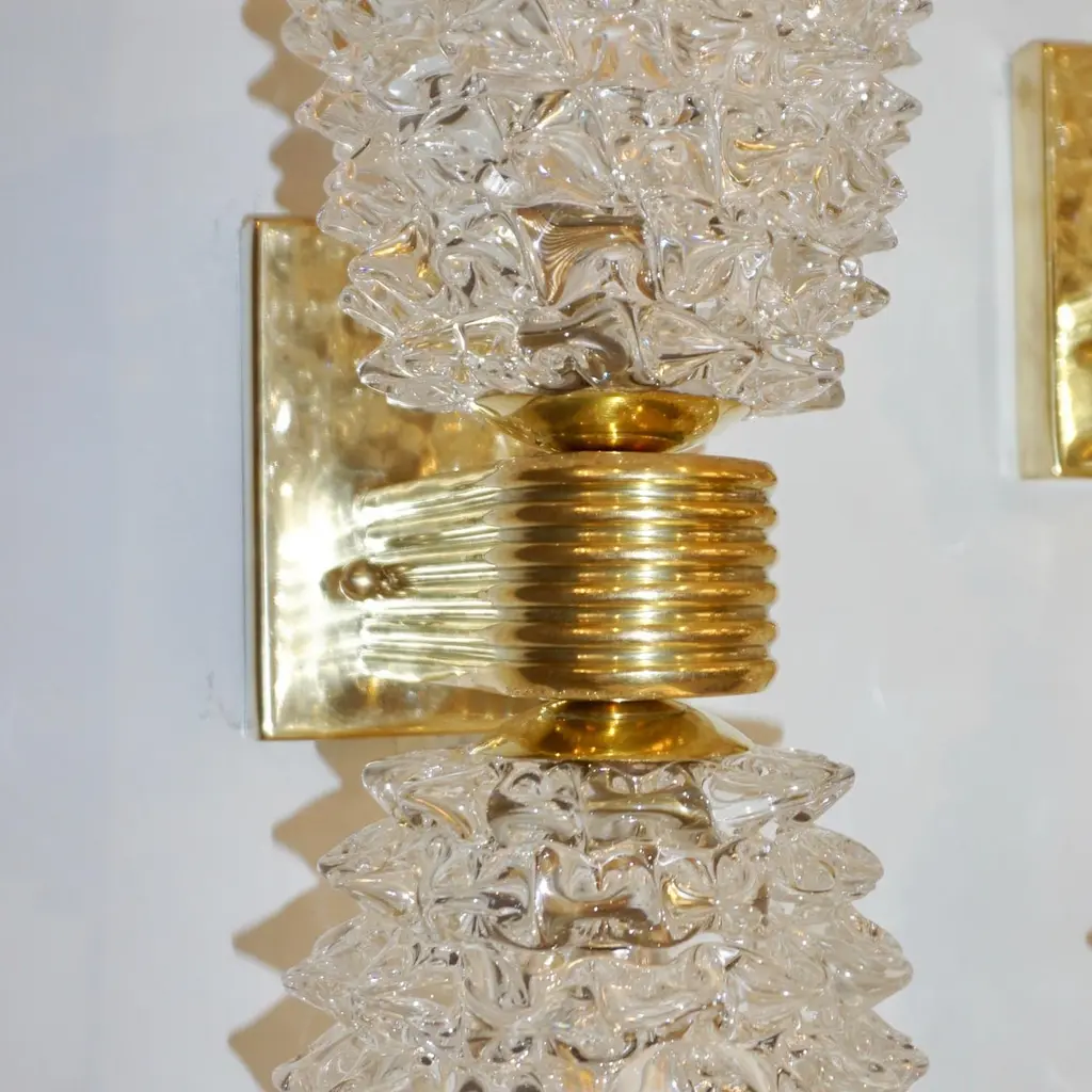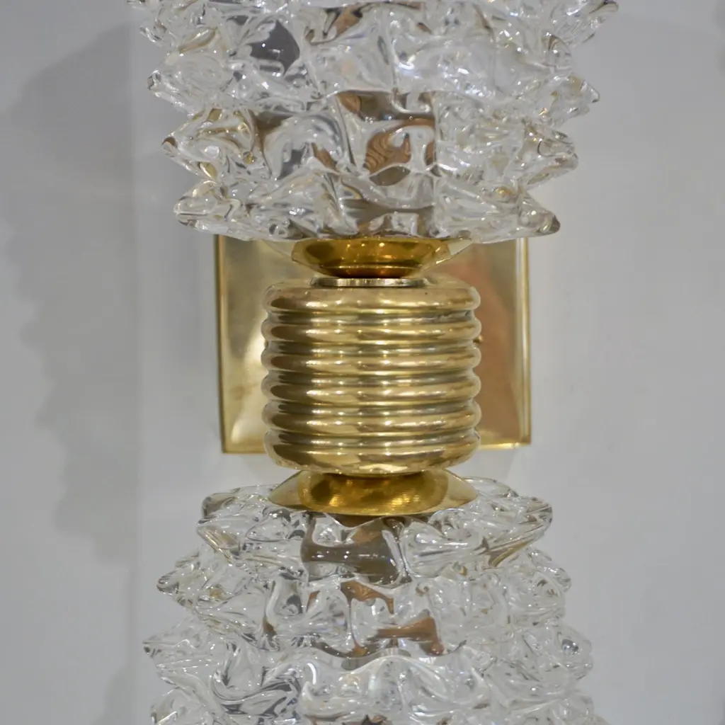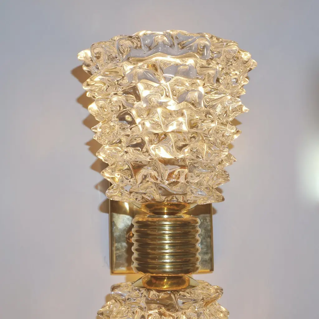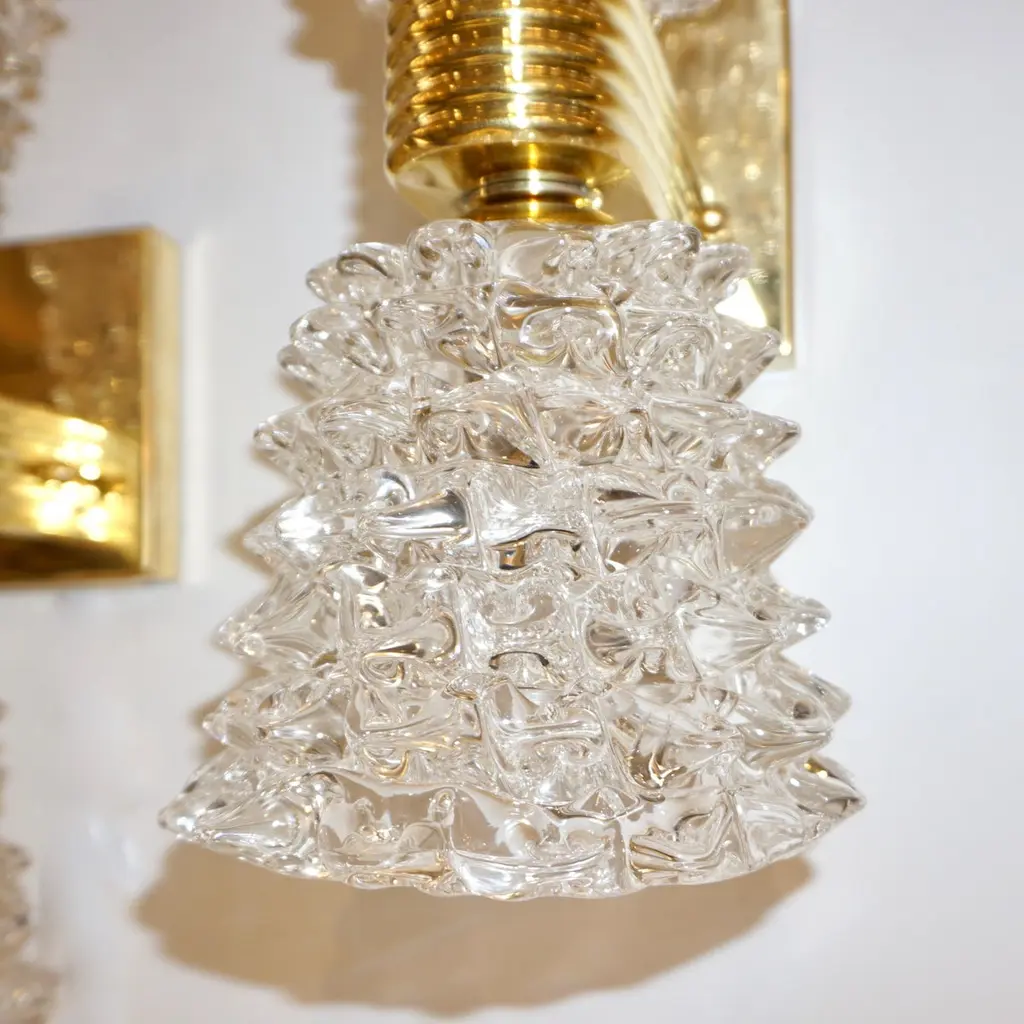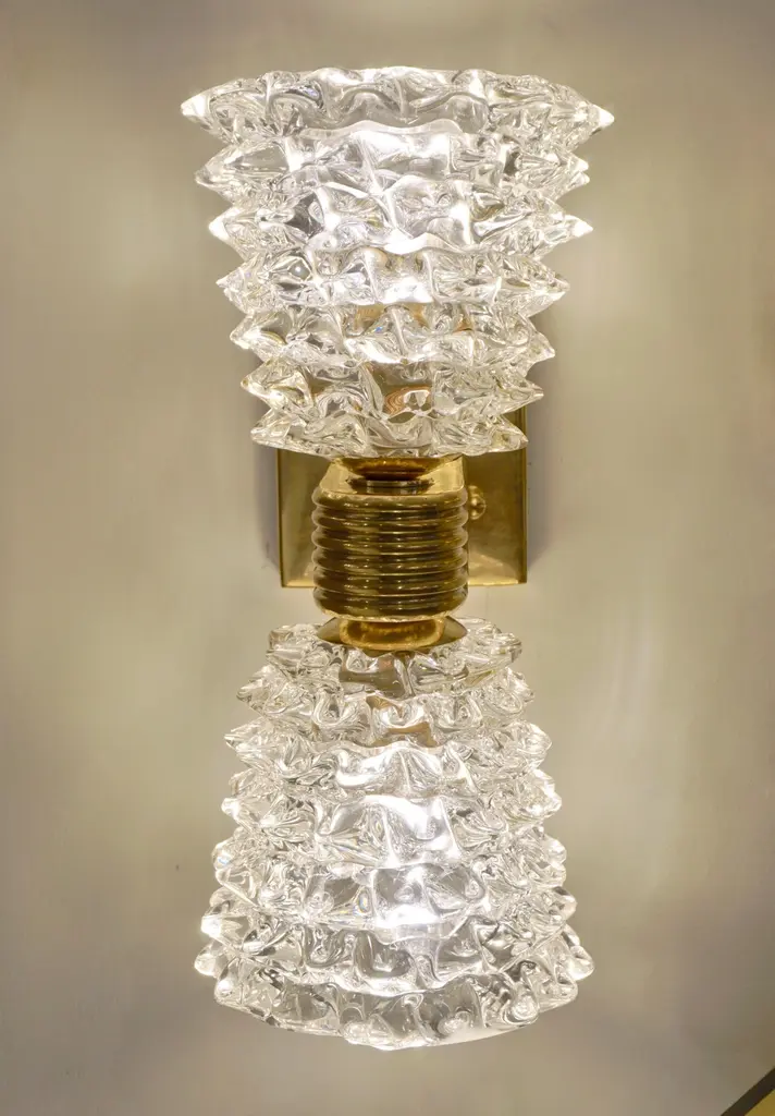 Contemporary Italian Rostrato Crystal Murano Glass & Brass Double-Lit Sconce