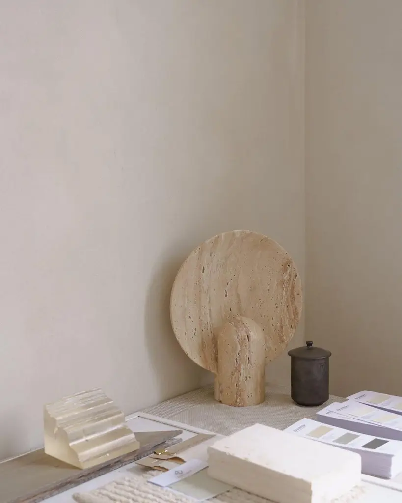 Contemporary Light Beige Travertine Surface Sconce By Henry Wilson