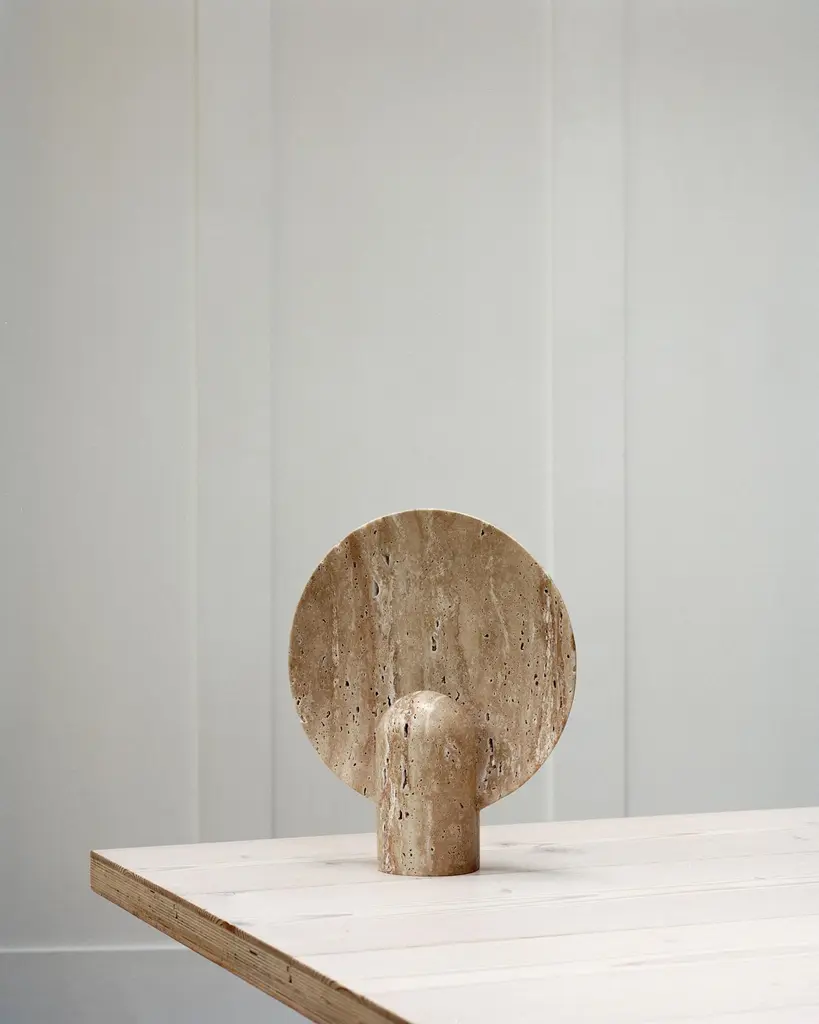 Classico Travertine Surface Sconce by Henry WilsonDimensions: W 30 x D 11 x H 35 cmMaterials: TravertineThis sculptural item ais handmade in Sydney Australia.The surface Sconce in Calacatta Marble is an ambient, sculptural light carved in two halves from solid stone.Each light is manufactured in natural stone, meaning variations of the pattern in the stone will occur from piece to piece.Dimensions: 350 x 300 x 100mm Comes boxed with wiring. Henry Wilson's work combines a rational, democratic utility with an element of sculptural expression. There is a clear form and function in our products, but it’s important they also have feeling. We are interested in the awkward beauty that comes from something made by hand. We like to explore how imperfection can be introduced into an industrial process, to make something at scale that retains a sense of individual charm.Permanent collections and exhibitions- Museum of Applied Arts and Sciences, Sydney, Australia- Art Gallery of Western Australia, Perth, Australia- 'Sempering' XXI Triennale, MUDEC, 2016, Milan, Italy.All our lamps can be wired according to each country. If sold to the USA it will be wired for the USA for instance.