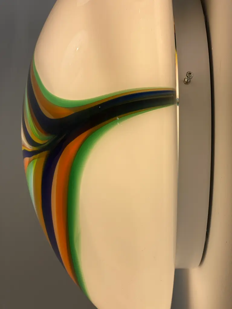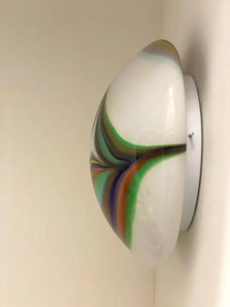 Contemporary Multicolored Reeds in Murano Glass wall sconces or flush mount. from Simoeng Wall light impressive Contemporany Floreal design in very particular and effective movement. Very High Italian craftsmanship. Venetian multicolored reeds make up this scenographic suspension wall light .These jewels melted together are skillfully blown by skilled Murano masters, Ambient and shenographic interior light. Chromed metal frame for 2 bulb. Shipped from Italy. D 40cm h.18cm Diameter 15.7" Height 7" 2 bulbs, bulbs LED required All made in Italy, schip from Italy