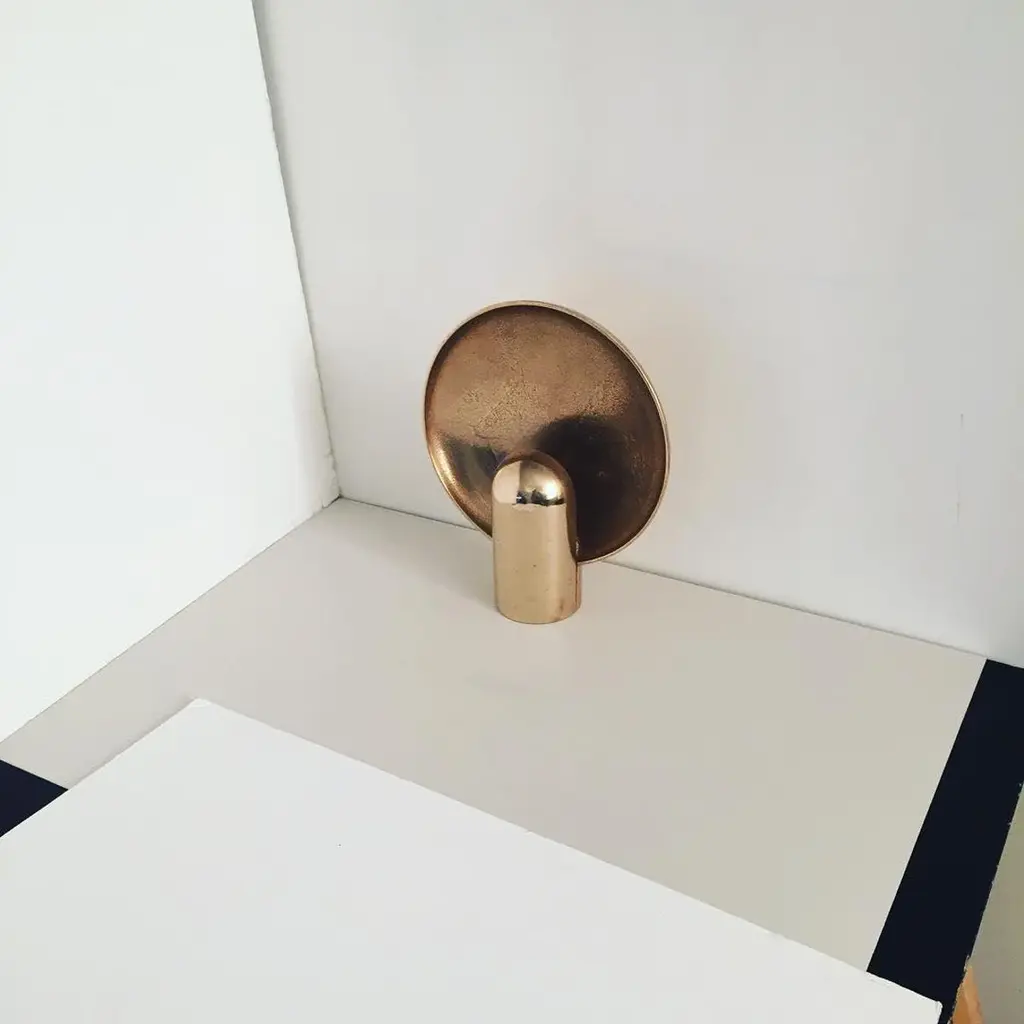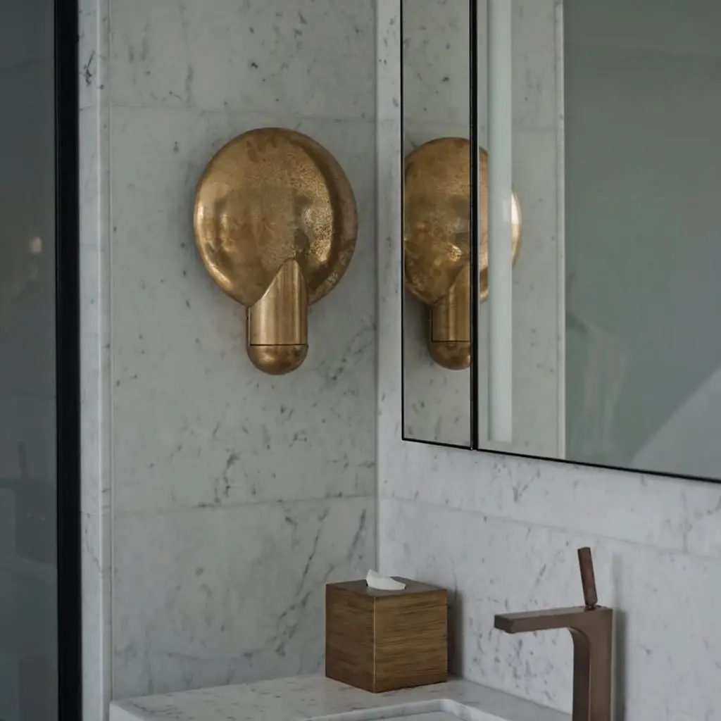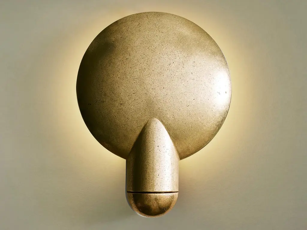 Contemporary Round Disc-Like Golden Bronze Surface Wall Sconce By Henry Wilson