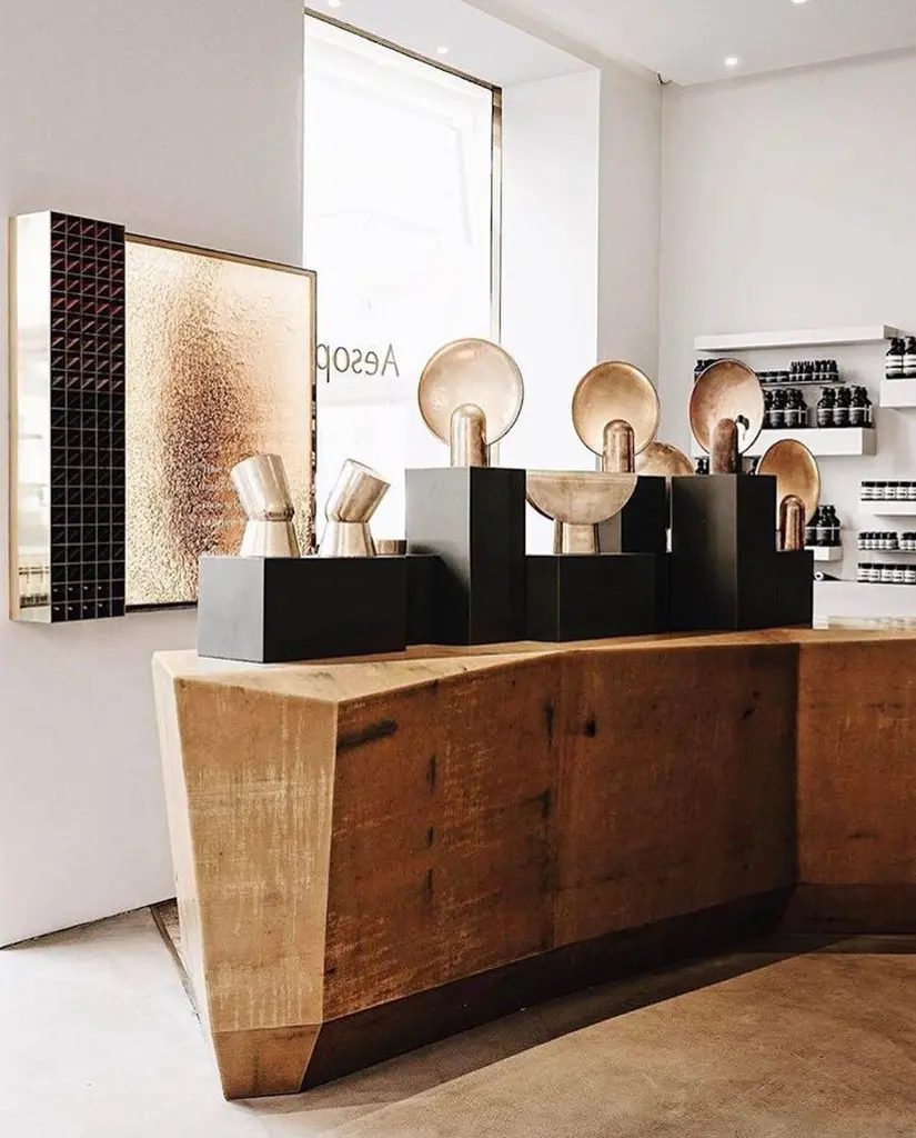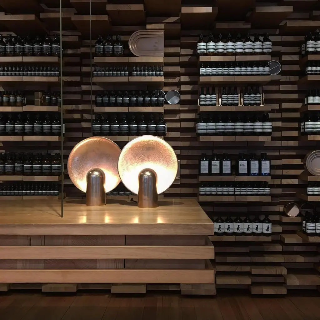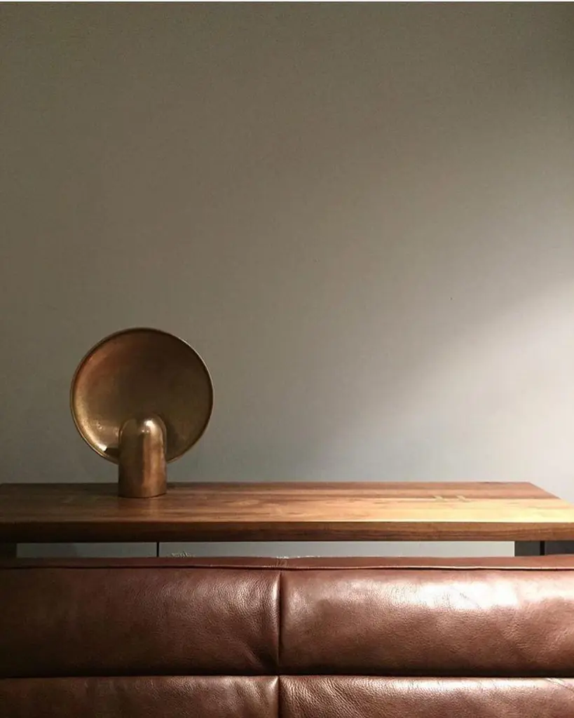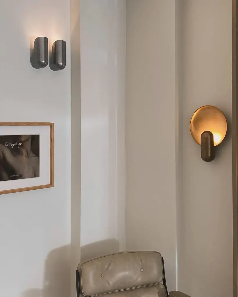 Contemporary Round Disc-Like Golden Bronze Surface Wall Sconce By Henry Wilson
