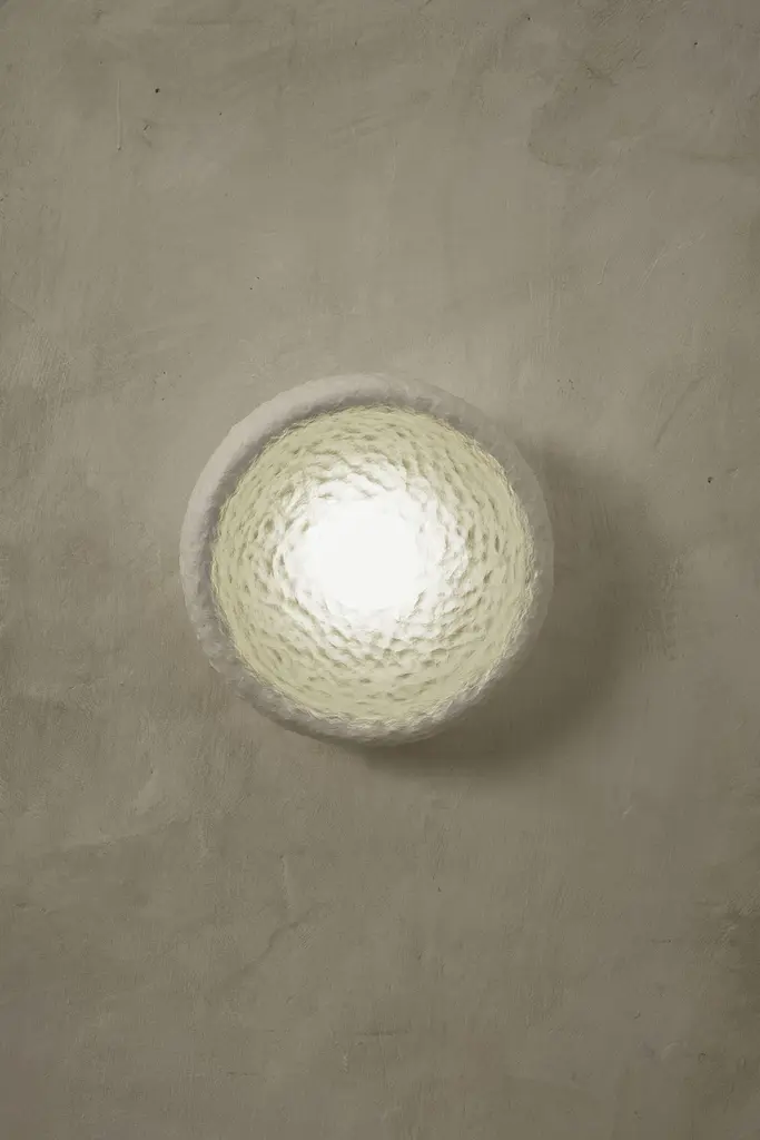 Contemporary Small Wall Lamp by FAINADesigned by Victoriya YakushaMaterials: sustainable ZTISTA (a blend of upcycled steel, flax rubber, wood chips, cellulose, and clay covered with a biopolymer cover)Dimensions: 300 x 300 x 150 mm.Only for indoor useAll our lamps can be wired according to each country. If sold to the USA, it will be wired for the USA, for instance."Soniah" in Ukrainian — “sunflower,” one of the symbols of Ukrainian land.SONIAH tends toward the sun, filling the space with soft light. It grows singly or together with other sunflowers.In search of new-old design messages, Victoria Yakusha conducted a study of the daily traditions of our ancestors. In the times of Trypillia and the Scythian civilization, Slavs household habits designers studied the forms, materials, and craft techniques of those times. They brought modern perusal to the traditional things.--AWARDS-- Industart 2015 Award for PECHYVO cabinetArchiproducts Awards — SHCHEDRYY table nominatedAZ Awards Canada nominated SOLOD cabinet The Interior of the Year Award for ZTISTA chair--EXHIBITIONS--Solo: 2017 - Stockholm Furniture Fair: The collection had an individual Stand2018 - Milan Design Week: presented novelties at Superdesign Show. 2018 - London Design Fair: presented the full collection.Group: 2015 - Bologna Design Week: first exhibition for the new Collection.2017 - Dutch Design Week: SOLOD Cabinet, HRYB coffee table — participants of the exhibition.2018 - Paris Design Week: Bandura vase in the "1000 vases" Project by Roberto Bachiocci2019 - Stockholm Design Week: presented at the two TOP locations — "Fenix Palace" & "Temperament" exhibition by Sahara Widoff.2019 - Milan Design Week: KOROTUN table, BANDURA & MOTANKA vases featured in Studiopepe installation "Les Arcanistes — Future Un / written".