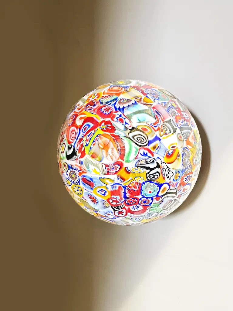 Contemporary Venetian Multicolored "Murrine" Little Sphere Wall Sconce O Flush Mountt In Murano Glass