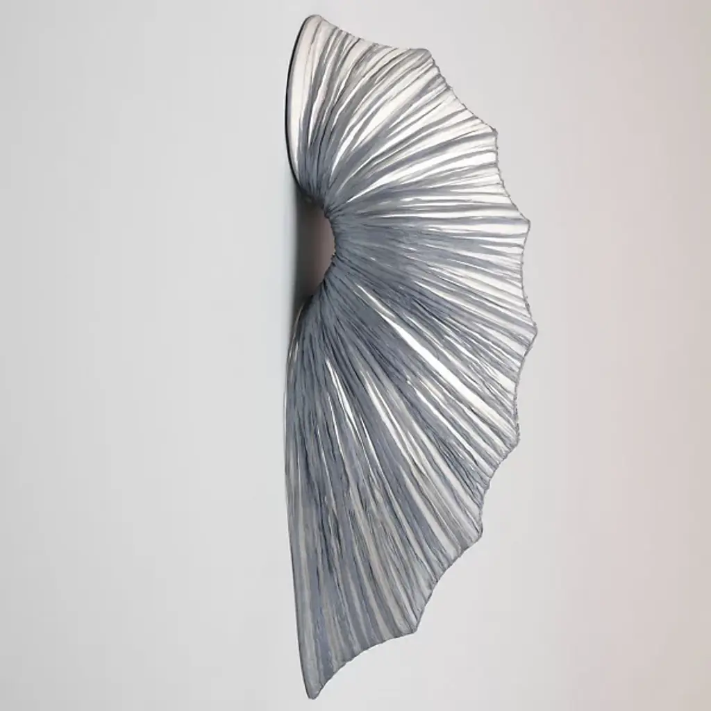 The Contrare Wall Sconce from Aqua Creations provides a bold mix of modern sculptural engineering and architectural design to enliven adjacent wall spaces. Each piece is handmade in Aqua’s Israeli studio, setting strong lamping inside a steel structure, surrounded by a crushed silk shade treated for added durability. The appearance and texture of each lamp are subtly unique due to their handcrafted nature, standing out as both decoration and functional ambient lighting that add sophistication to any space.