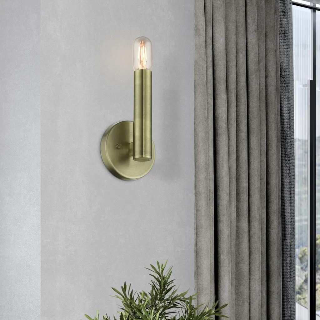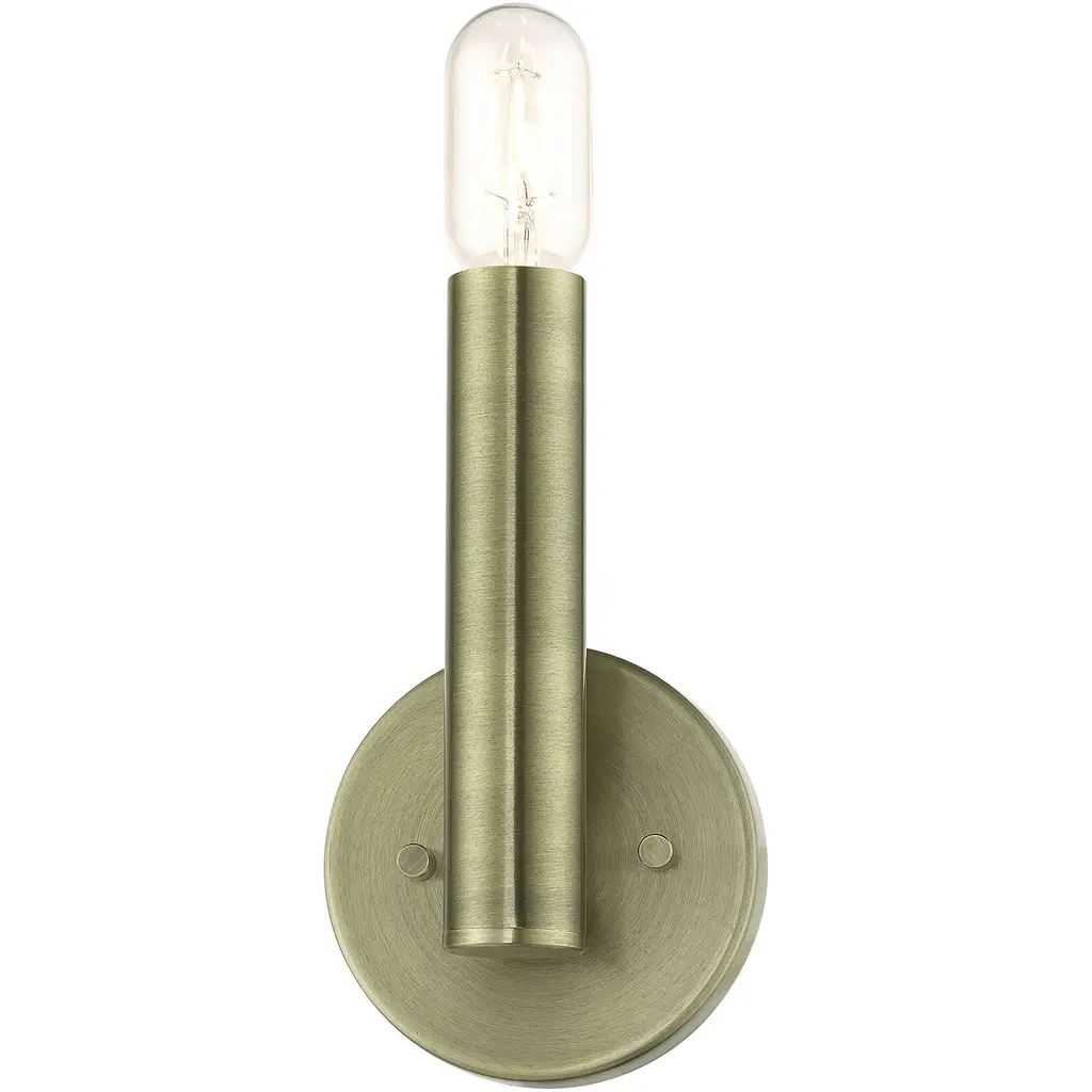 This 1 light Wall Sconce from the Copenhagen collection by Livex Lighting will enhance your home with a perfect mix of form and function. The features include a Antique Brass finish applied by experts. This item qualifies for free shipping!