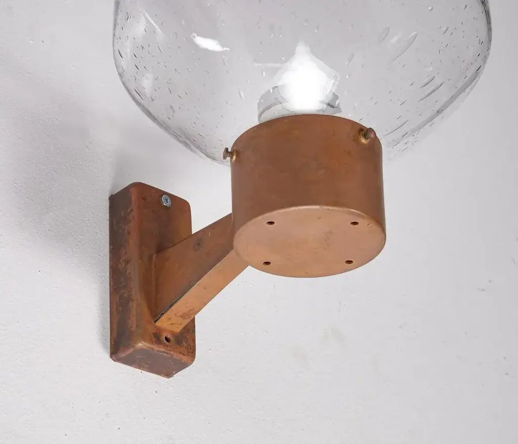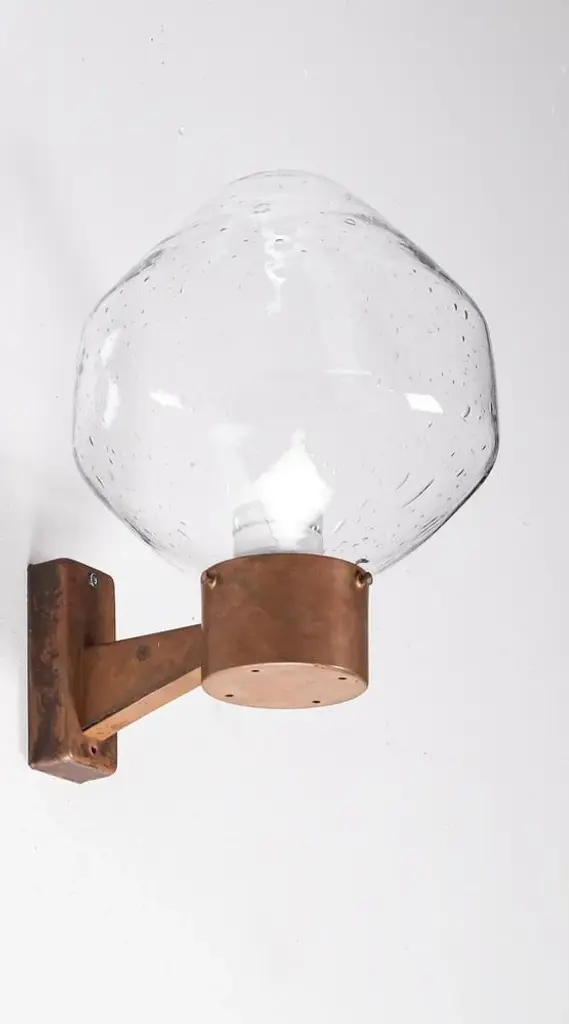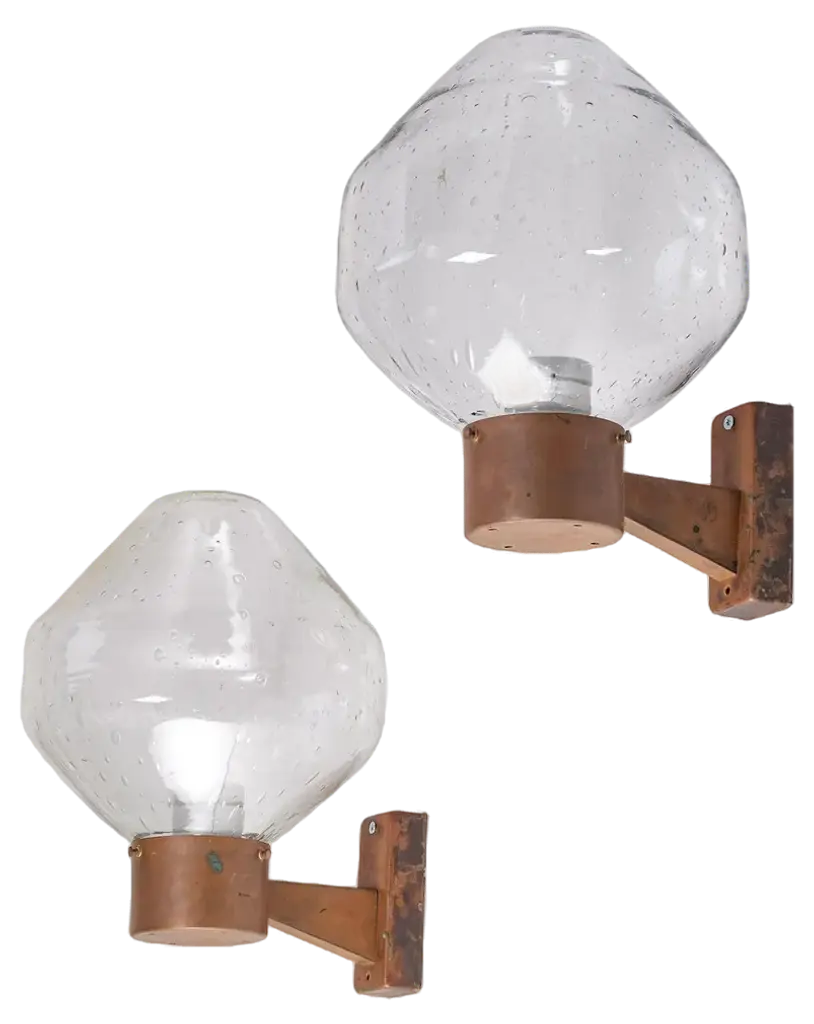 Rare model. 2 available. Outdoor wall lamps with great patina. Produced in Sweden by Fagerhults, 1960s. This piece is attributed to the mentioned designer/maker. It has no attribution mark and no official proof of authenticity, however it is well documented in design history. I take full responsibility for any authenticity issues arising from misattribution, Up to 250V (Europe/UK Standard).The wiring of this item may be original and might need replacement, if not specified otherwise.